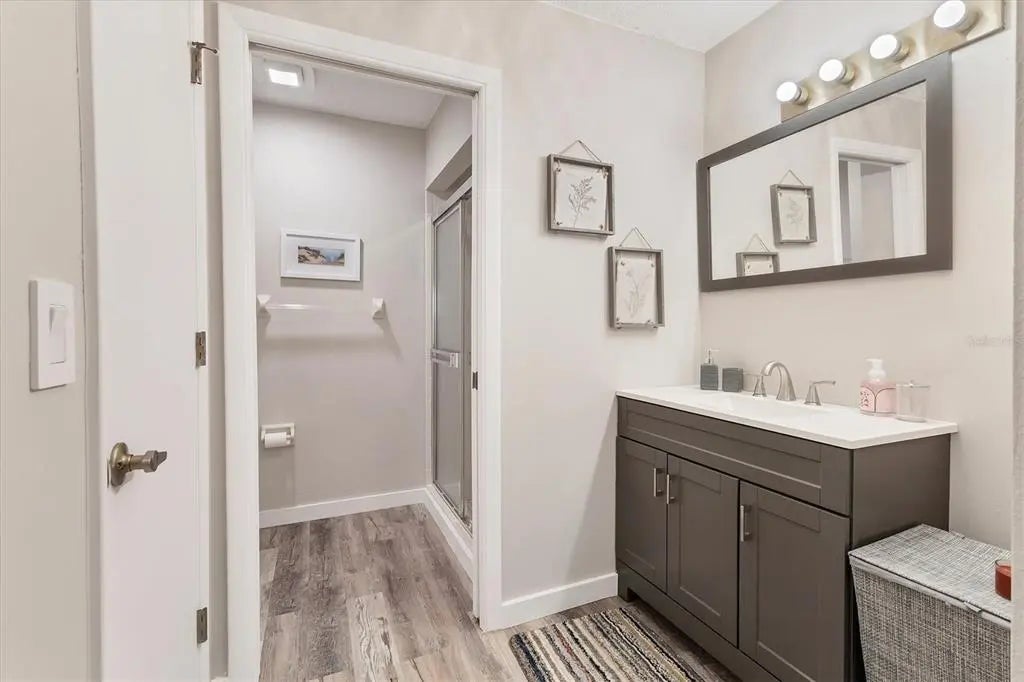 Move-in Ready! Beautifully remodeled 2-bedroom, 2-bath villa on the first floor, located in a private and quiet area overlooking the golf course. This home features a fully open floor plan with a granite kitchen island, granite countertops, and new kitchen cabinets. The kitchen also includes a new stove and updated stainless steel appliances. Enjoy new flooring throughout, updated bathrooms with new vanities, and a new HVAC system. The roof has been recently updated, and the exterior is freshly painted for a modern, well-maintained look. Other upgrades include modern electrical switches and outlets. A separate laundry room with washer and dryer adds convenience, while the single-car garage provides extra storage. Community amenities include a clubhouse, swimming pool, and a variety of social activities. Perfectly situated less than 2 miles from Sarasota Memorial Hospital, this villa offers comfort, convenience, and modern living in a serene golf course setting.