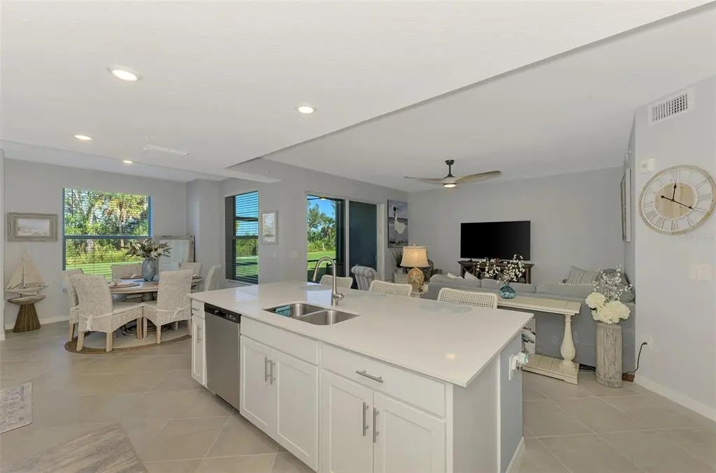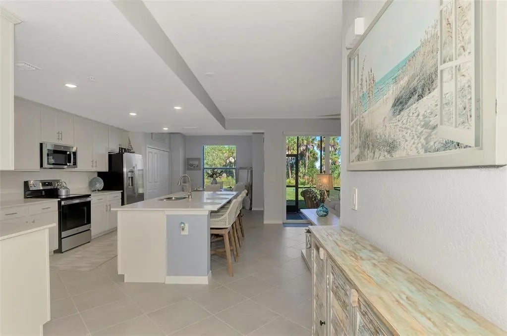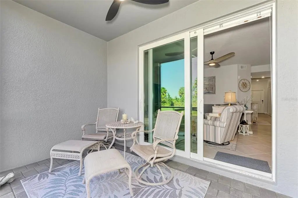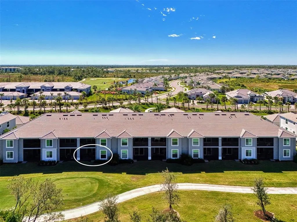 Now is your chance to own this FIRST-FLOOR condo in the new and exciting community of Wellen Park Golf and Country Club. This Diangelo II model floor plan features a stunning view situated between the 4th and 5th holes of the golf course framed with a view of a protected bird sanctuary. THE BUILDER IS COMPLETELY SOLD OUT OF GOLF INCLUDED VERANDA CONDOS! GOLF MEMBERSHIP is deeded with this unit, and the amenities, which just opened, are 5 stars and like nothing the Venice area has ever seen! This condo enjoys a one car detached garage, and two large outdoor spaces that include both a large screened-in front porch and a second screened-in lanai off the back. Once inside, you will be captivated by a smartly designed floor plan that boasts 2 large bedrooms, 2 bathrooms, a separate den/office space that can easily be used as a third bedroom if needed, and a large kitchen with open concept living and dining areas. Enjoy beautiful upgrades such as tile on the diagonal that runs throughout the entire home (NO CARPET), upgraded ceiling fans, white shaker style cabinets, quartz countertops, and a stainless-steel appliance package. In-unit laundry is outfitted with a washer and dryer for ease and convenience. The primary suite features two large walk-in closets, plus a separate linen closet, and an en suite bathroom with dual sink vanity and a walk-in shower. The second bedroom is located on the opposite side of the foyer for privacy and enjoys a second full bathroom with a tub/shower combo. The condo is flooded with light, and all hurricane impact windows are outfitted with custom fitted blinds. Just a short walk, bike ride, or golf cart journey to the resort amenities, you can easily access the new pool and amenity center or enjoy the second condo satellite pool that is just a few buildings away. The amenities include a resort style pool and spa, tiki bar that serves food and drinks, a golf pro shop, tennis shop, pickle ball courts, tennis courts, bocce ball, dog park, state of the art fitness center, day spa, and a future main clubhouse with a community restaurant and so much more! This guard gated community is golf cart friendly and enjoys quick and easy access to both the CoolToday Park stadium, home of the Atlanta Braves spring training camp, and the new and exciting downtown of Wellen Park. Enjoy 3 local beaches and the historic island of Venice, all just a short drive away. The builder is now selling only NON-GOLF CONDOS, and all Veranda style condos are sold out! With the golf membership included with this unit, you won't find a better value! This condo is move-in ready, and is great as a full-time residence, a seasonal vacation home, or a high-income producing investment! Now is the time to take advantage of this opportunity to start your new life in Southwest Florida. Come check this out today!