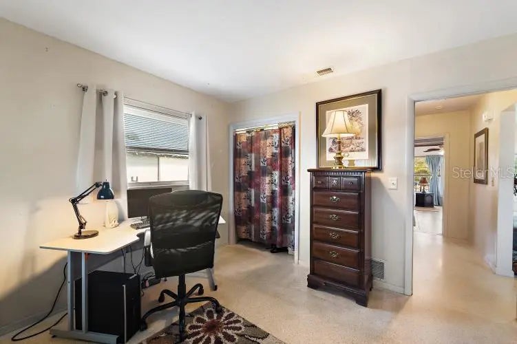 Don't miss your chance to live in this spacious home! Located in Venice Gardens. Public water, sewer and offers a community pool! This well-maintained 1,853-square-ft home offers a peaceful and private setting. Located on a cul-de-sac. Perfect for those seeking tranquility in their daily lives. The split floor plan which is functional and inviting boasts three bedrooms and 2.5 baths, is ideal for families or anyone who values distinct living spaces. Upgrades include New Roof, Water Heater in 2024 and new air conditioner 2023. With terrazzo floors throughout keep home more temperate and cool in the summer months, and easy to take care of. The open living area creates a great space for entertaining or relaxing which is ideal for unwinding with a movie after a day at the beach. The spacious kitchen at the heart of the home is designed for efficiency with extra cabinetry and room for a café table or bakers rack making it a practical yet charming space for cooking. The primary suite is an owner’s retreat featuring a large walk-in closet and a private en suite that elevates comfort and convenience. The second bedroom, at front of the house also includes a walk-in closet, making it a great option for guests or additional family and near the second full bath making this a modern convenience for family and guests. The third bedroom, tucked away on far end of the home offering more privacy. The large, enclosed Florida room at the back is a standout feature, offering endless possibilities whether as an extra dining space, a second entertainment room or a sunny spot to relax with a view of the large backyard. The outdoor space is a major asset, providing plenty of room for gardening, play or simply soaking in the Florida lifestyle. This home is centrally located with great proximity to beautiful Gulf beaches, charming downtown, many shops and lots of dining options. Home is being sold As-Is with right to inspect. This home is well maintained and move in ready!
