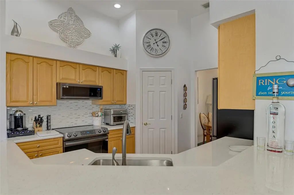 Move-In Ready Former Builder’s Model with Private Waterview & Sparkling, Heated Pool! Discover your slice of paradise in Gulf View Estates, one of Venice’s most sought-after “Hidden Gem” communities. This beautifully updated 3-bedroom, 2-bath custom home sits on an 80x100 corner lot offering a serene private waterview setting and the ideal Florida lifestyle. Enjoy relaxing or entertaining on the oversized 38x13 screened lanai overlooking the sparkling pool and tranquil water area. Inside, the open, split-bedroom floor plan is light and bright with soaring ceilings and multiple sliding glass doors that bring the outdoors in. The spacious owner’s suite features direct lanai access, a large walk-in closet, and an en-suite bath with a double-sink vanity, walk-in shower, and private water closet. The chef’s kitchen is a delight with solid oak cabinetry, quartz countertops, custom tile backsplash, stainless steel appliances, a walk-in pantry, and a cozy breakfast nook with bay window views. A formal dining room with a tray ceiling adds elegance for entertaining. One guest room even opens directly to the lanai, making it perfect for a home office or den. Recent updates include a new roof (2020) and new HVAC (2024) for added peace of mind. Additional features include retractable hurricane screens, an interior laundry room, and a side-entry 2-car garage with a laundry tub and extra storage. All this is located in Gulf View Estates, a friendly, deed-restricted community with LOW HOA fees of just $325/year and NO CDD fees. You’re only 5 minutes to Manasota Key Beach and moments from Venice’s shopping, dining, golf, and entertainment—including CoolToday Park, home of the Atlanta Braves Spring Training! Live the Florida lifestyle you’ve been dreaming of—schedule your private showing today!
