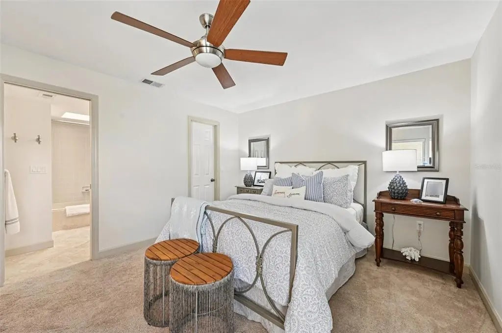 - Interior FeaturesCeiling Fan(s), Eating Space In Kitchen, High Ceilings, Open Floorplan, Primary Bedroom Main Floor, Solid Surface Counters, Solid Wood Cabinets, Split Bedroom, Stone Counters, Thermostat, Tray Ceiling(s), Walk-In Closet(s), Window Treatments