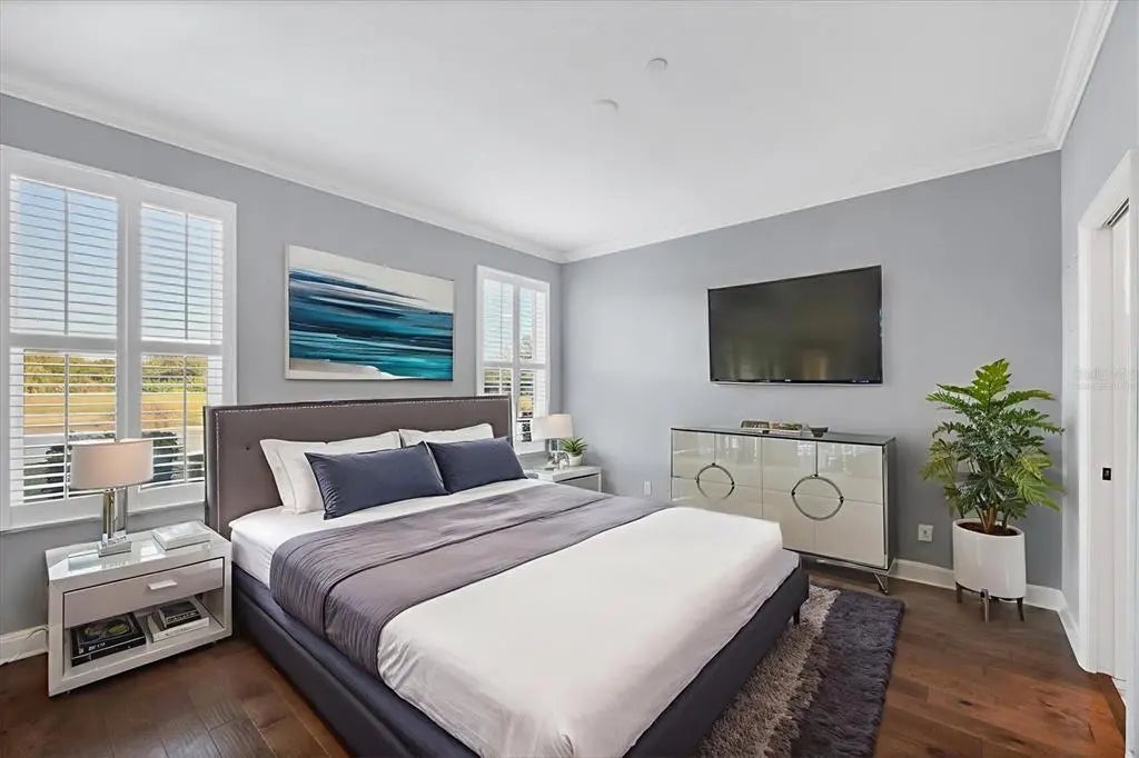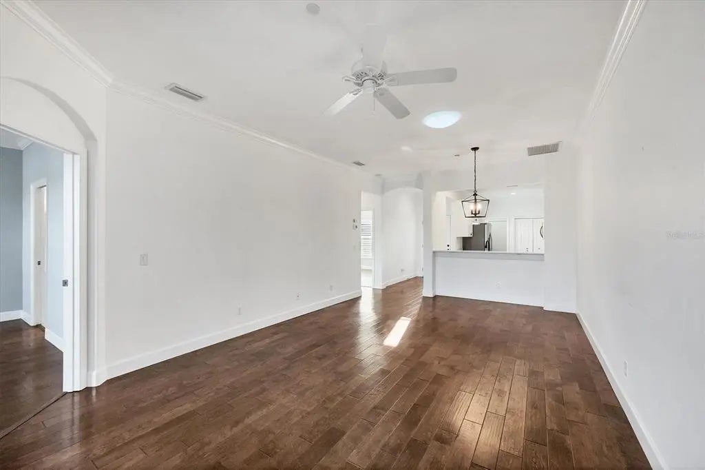 - Interior FeaturesCeiling Fan(s), Coffered Ceiling(s), Crown Molding, Eating Space In Kitchen, High Ceilings, Living Room/Dining Room Combo, Open Floorplan, Primary Bedroom Main Floor, Solid Surface Counters, Walk-In Closet(s)