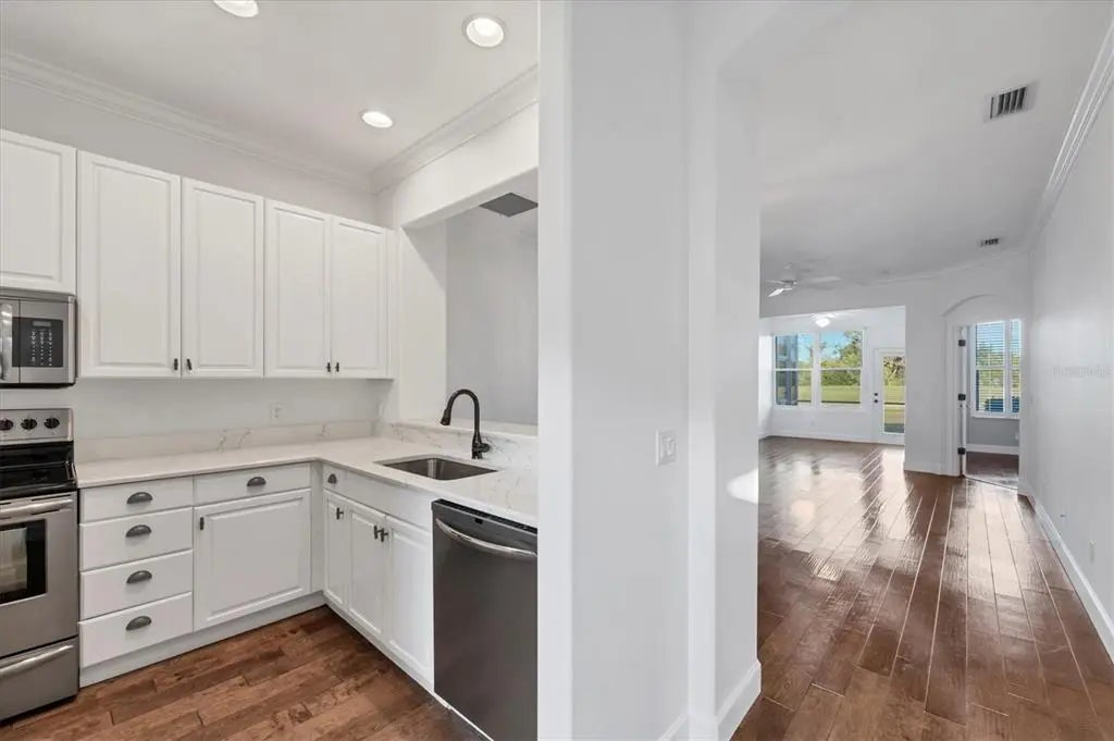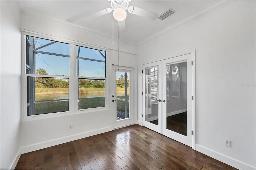 One or more photo(s) has been virtually staged. WELCOME HOME TO THIS BEAUTIFULLY UPDATED VILLA! This 2-bedroom, 2-bath, 2-car garage residence offers serene golf course and water views and an exceptional blend of comfort, style, and value. Step inside to discover new flooring, new tile in the bathrooms, and a stunning quartz kitchen countertop that elevates the entire space. The Primary Bedroom is in the rear of the house with views of the golf course and french-doors that open to the bonus room. The guest bedroom has a murphy bed with additional storage. This maintenance-free villa is truly worry-free, featuring low HOA fees and NO CDD fee—making ownership as affordable as it is enjoyable. Hurricane-impact windows add an extra layer of security and peace of mind, while major updates such as a new roof (2024) and new A/C (2022) ensure long-term comfort. in addition, new interior paint! Pelican Point offers resort-style living with a beautifully appointed clubhouse featuring a grill room that is open for lunch, a heated pool, fitness center, tennis courts, library, and social room. Enjoy the 27-hole golf course, where membership is optional—perfect for both golfers and non-golfers alike. Ideally located with easy access to I-75 and just minutes from Venice Island’s shops, dining, and beaches, this villa combines convenience with a tranquil lifestyle. Don’t wait—this home is priced to sell and won’t last long!