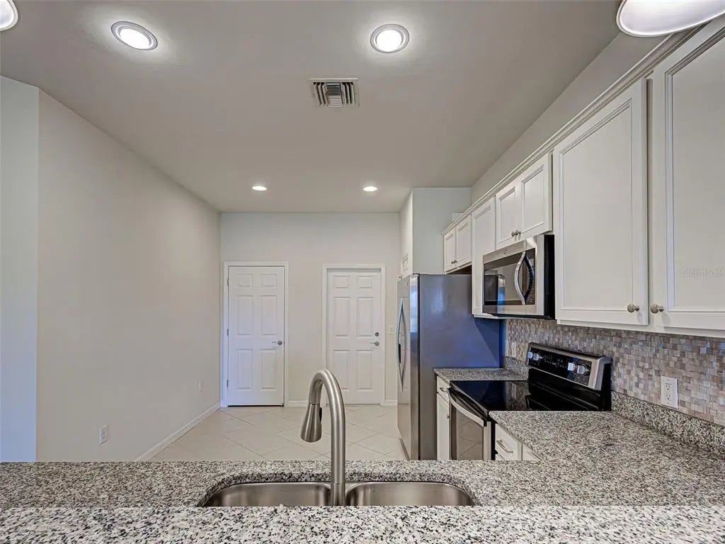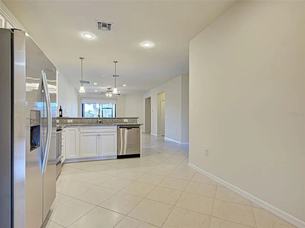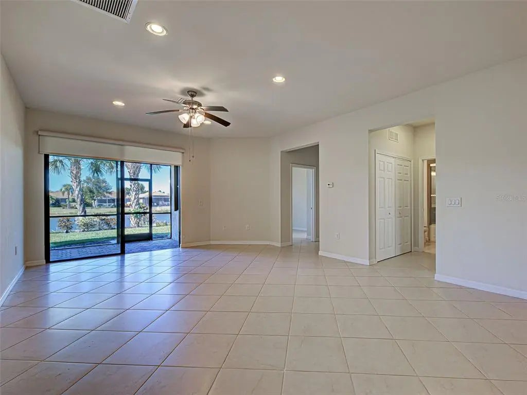 This beautifully maintained “SEAGROVE” villa is ideally located in the heart of Islandwalk, JUST STEPS FROM THE MAIN RESORT CENTER and its incredible amenities. Offering 2 bedrooms, 2 bathrooms, and a versatile flex room, the home is designed with both comfort and functionality in mind. From the moment you enter, you’ll notice the LIGHT-TONED TILE FLOORING that runs throughout—no carpet anywhere—paired with a NEUTRAL COLOR PALETTE that creates a bright, airy atmosphere ready to complement your personal décor style. The villa enjoys serene WATER VIEWS and exceptional PRIVACY with no front neighbors, while ample parking makes it easy to welcome guests. Inside, the kitchen is thoughtfully appointed with WHITE CABINETRY, granite countertops, a pantry and coordinating backsplash, opening seamlessly to the dining area and great room. This open-concept design allows natural light to pour in and provides water views from multiple points through sliding glass doors, including the kitchen, dining room, and great room. The primary bedroom is tucked away for privacy and features an en suite bathroom, a spacious walk-in closet, and tranquil water views, creating a peaceful retreat. Nearby, the laundry closet offers convenience with a washer, NEWER DRYER, and upper cabinetry for extra storage. The second bedroom includes tile flooring, a built-in closet, and ceiling fan, situated adjacent to a full guest bathroom complete with a bathtub, white cabinetry, and a linen closet nearby for added organization. The flex room, enclosed with DUAL SOLID DOORS, provides versatility to suit your needs—it can serve as a third bedroom, home office, or hobby space. Recent upgrades add further value and peace of mind, including a NEW WATER HEATER (2025), A/C motor recently replaced, NEW EPOXY GARAGE FLOORING (July 2025), along with a hanging rack for storage, combining durability with practical organization. Outdoors, the COVERED AND SCREENED lanai offers a relaxing space to enjoy tranquil water views and BEAUTIFUL SUNSETS thanks to the WESTERN EXPOSURE, extending the living area and creating the perfect spot for morning coffee or evening gatherings. Residing in Islandwalk means enjoying resort-style living all year long. This active community offers geothermal pools, Har-Tru tennis courts, pickleball and bocce ball, lap pools, spas, playground, basketball court, dog park, two state-of-the-art fitness centers, staffed 24-hour front gate, on-site HOA staff seven days a week, outdoor pavilions with BBQ grills, a library, and much more to keep you and your guests engaged. Golf carts are permitted throughout the community and can even be taken outside if registered. Residents also enjoy exclusive access through a resident-only back gate to Downtown Wellen Park, featuring a Marketplace anchored by Publix, the Atlanta Braves ballpark, restaurants, and entertainment. Conveniently located just 4 miles from I-75, Islandwalk offers easy access to multiple pristine Gulf beaches, airports, Historic Venice Island, and cultural events.