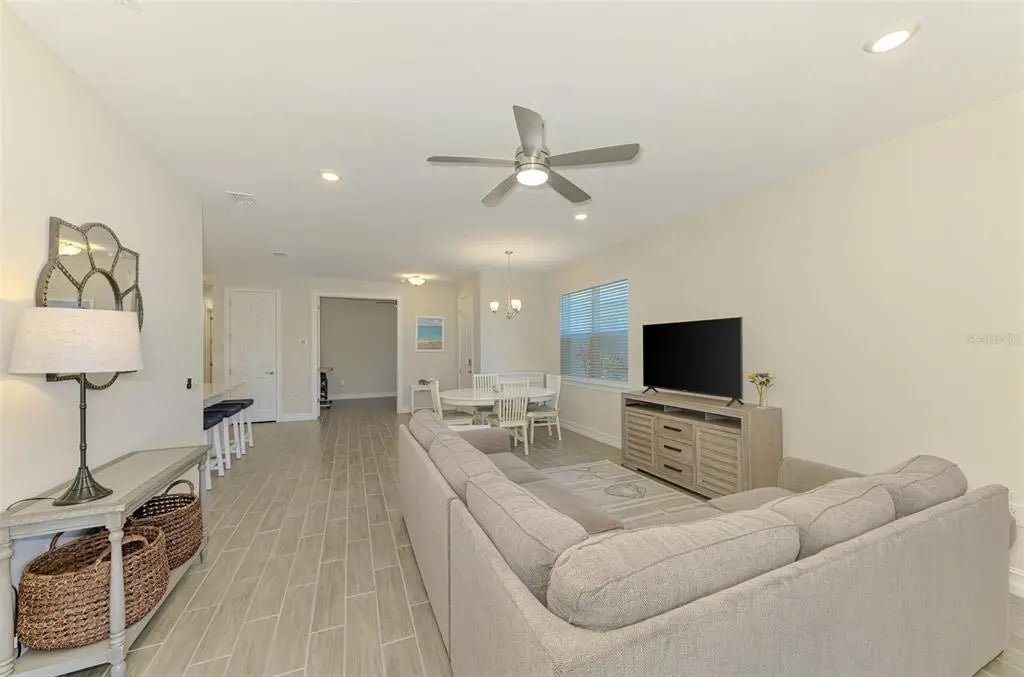- Interior FeaturesCeiling Fan(s), High Ceilings, Kitchen/Family Room Combo, Living Room/Dining Room Combo, Open Floorplan, Smart Home, Stone Counters, Window Treatments