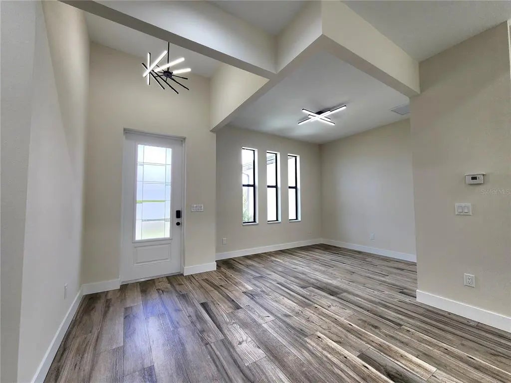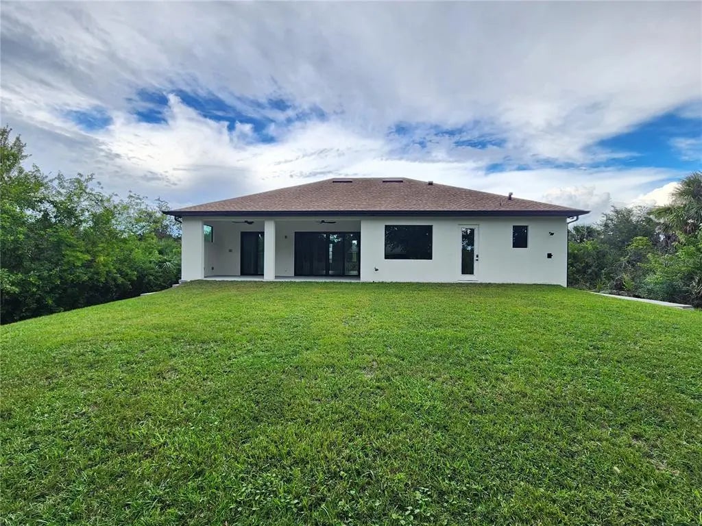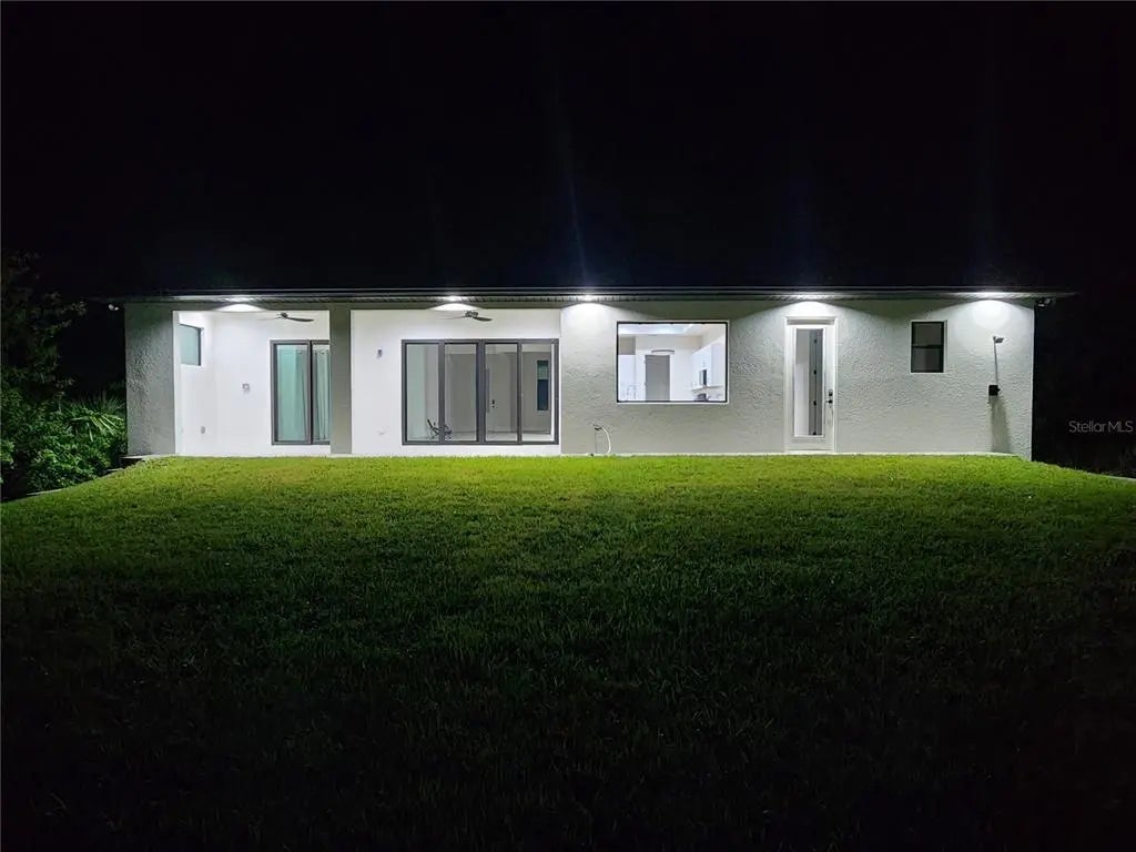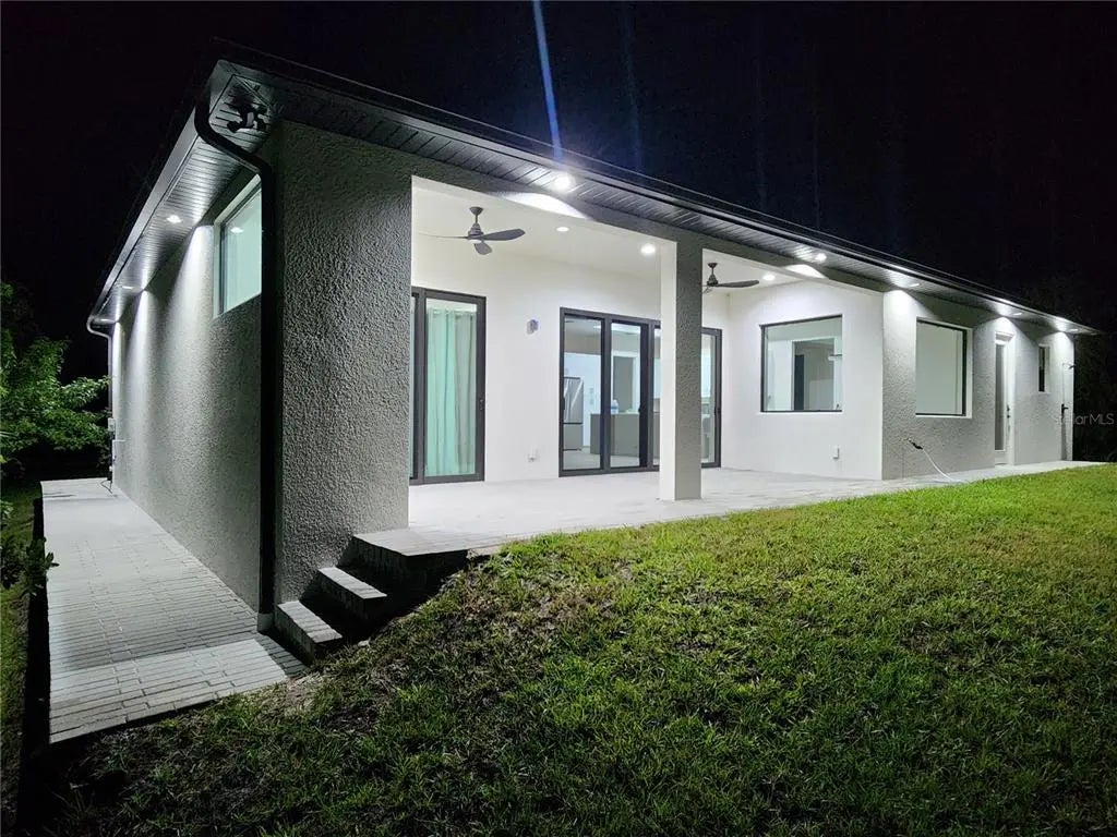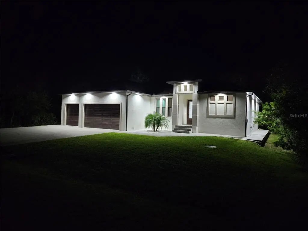 Discover exceptional craftsmanship and modern luxury in the newly built home, designated with high-end finishes and details inside and out. Built for comfort, durability, and style, this residence offers hurricane-impact windows and doors for maximum protection and peace in mind. Step inside to an elegant open-concept layout featuring 10' ceiling with modern step ceiling accents and 8' interior doors, giving every room an elevated, spacious feel. The entire home is finished with beautiful tile flooring, creating a clean and cohesive aesthetic. The gourmet kitchen is a showpiece, highlighted by an impressive granite waterfall island and granite countertops in both the kitchen and bathrooms. Designated with lifestyle in mind, the home includes:-outdoor shower, -rough plumbing for lanai sink, -pre-wired and prepped for a pool, -prepped for a fireplace.Additional upgrades include a double sink in the garage, 12' garage ceilings, and a 32'-wide paver driveway. Paver sidewalk also surrounding the home, enhancing curb appeal and convenience. This home blends luxury features with practical comfort - move-in ready and prepared for furniture enhancements.