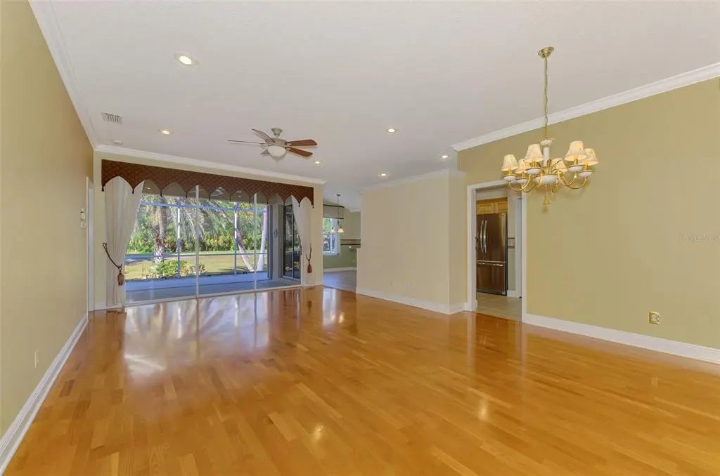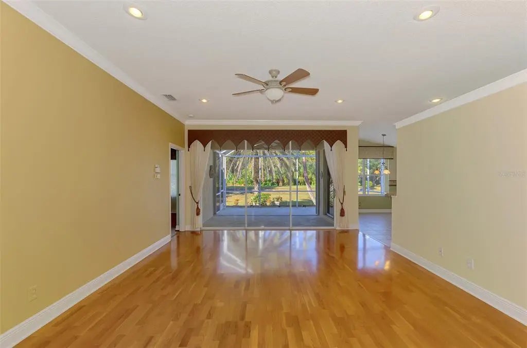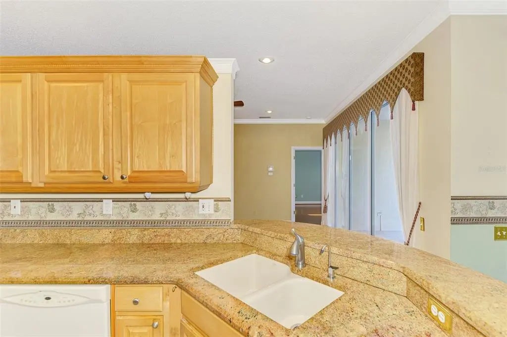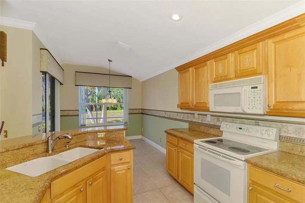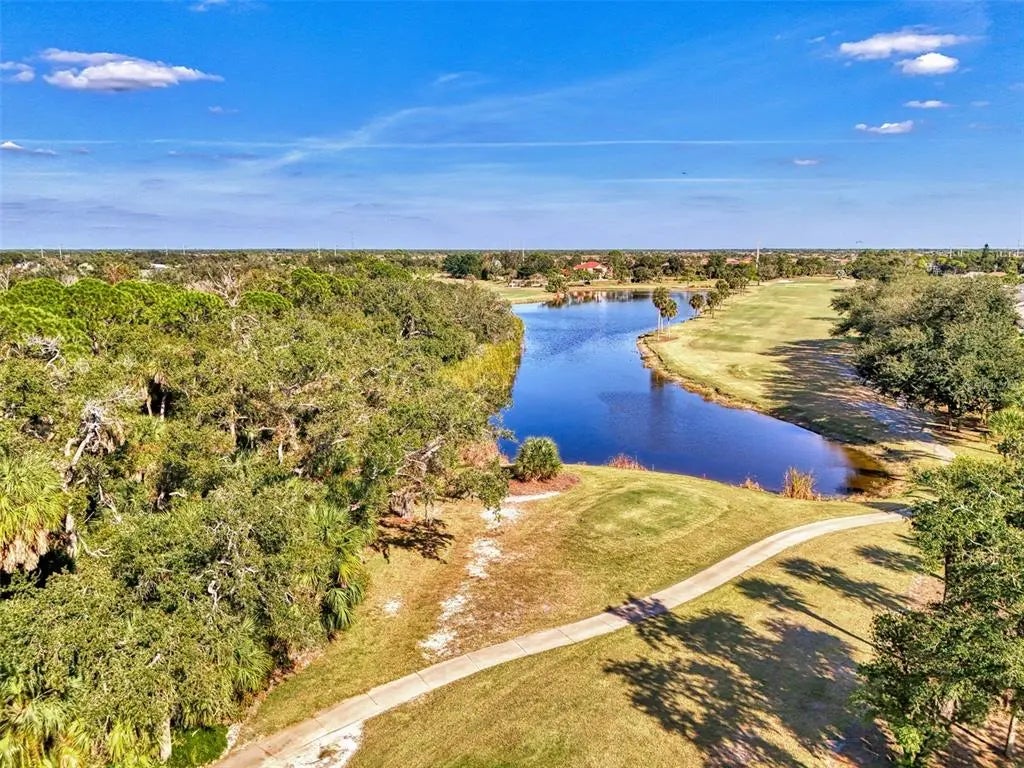 Under contract-accepting backup offers. One or more photo(s) has been virtually staged. Charming Home with Golf Course Views in a Quaint Neighborhood! Located just outside the Plantation Golf & Country Club, this delightful home offers breathtaking views of the #3 tee box on Panther Golf Course from the expansive lanai, primary bedroom, and living room/kitchen sliding glass doors. The split floor plan provides two bedrooms with a guest bath on one side, while the primary suite is perfectly positioned for privacy and relaxation, featuring a luxurious en suite with granite countertops, dual sinks, a walk-in shower, and a private water closet. The eat-in kitchen includes granite countertops, pantry, and crown molding flows throughout the home. The laundry room includes convenient cabinets and Bedroom 2 includes a charming window seat. The oversized garage has an exterior door, and the outside is finished with custom curbing. The extended lanai is ideal for entertaining or relaxing while taking in the scenic golf course and adjacent water views. Membership to the Plantation Golf & Country Club is Optional. The club offers two 18-hole championship golf courses, pickleball, bocce ball, tennis, fitness center, pool and fine dining. Don’t miss this opportunity—buyers, schedule your private tour today, and agents, bring your clients to experience why this one won’t last long!