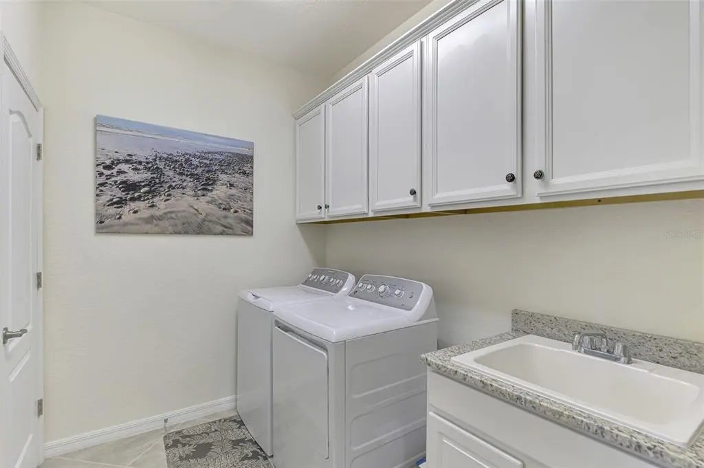 Now is your opportunity to own this beautifully upgraded pool home in the highly sought-after guard gated community of Sarasota National. Situated on a quiet street and close to both the amenities and the private owner’s gate for easy access, this popular Roma floor plan includes 2 GOLF MEMBERSHIPS with no initiation fees. Relax and unwind in your sparking heated pool and spa with a private preserve, expansive large lake, and golf course view! The lanai was upgraded with automatic Storm Smart hurricane protectors that roll down at the push of a button. As you step inside through the screened-in porch with glass entry door, you are greeted by a proper foyer with convenient storage closet. Around the corner is a spacious den/flex room with glass French doors that can transform into a space that fits your lifestyle. The main living space is open and airy and flooded with light thanks to large sliders and extra recessed lighting that was added. The builder basic kitchen was completely removed and a BRAND NEW chef’s kitchen was installed. No expense was spared in this $80,000+ renovation that includes solid KraftMaid cabinets that are stacked to the ceiling. You will enjoy wood rollouts in all the right places, large drawers in the lower cabinets for easy access, and decorative frosted glass cabinets to showcase some of your favorite pieces. A modern range hood was installed with a beautiful glass tile backsplash. Enjoy luxury built-in appliances and a large island with single-bowl sink. You will also find a separate custom built-in bar area with wine refrigerator that is conveniently located by the lanai. A large dining are that is flooded with light is a great space for gatherings. The private primary suite is large on space, with a walk-in closet, and a spa inspired bathroom with dual sink vanity, seamless glass walk-in shower, and separate water closet for privacy. The second bedroom in the front of the house overlooks a front porch, and there is a large second bathroom. The 2-car garage was upgraded with another Storm Smart automated screen that allows for air flow when working in the garage. There is an oversized laundry room with utility sink and extra cabinet storage that was added. Other upgrades include designer fans, light fixtures, crown moldings, and window blinds. Sarasota National is a maintenance free community managed by the coveted management team of Troon Prive. The HOA includes irrigation, mowing, trimming, edging, fertilization, re-mulching, cable, guard gate, resort style amenities, championship golf course, and so much more! Live like you are on a 5-star vacation with a 30,000sf clubhouse with resort pool, hot tub, outdoor tiki bar serving food and drinks daily, coffee house, 2 restaurant options, 7,000sf fitness center with top-of-the-line equipment and classes, day spa, card room, bocce ball, pickle ball, tennis, dog park, playground, and event lawn! Sarasota National is a coveted 2400-acre International Audubon Bird Sanctuary that offers some of the most beautiful water and preserve views in all of Venice. This home is minutes from the new and exciting town center of Wellen Park and the Atlanta Brave's spring training camp at the CoolToday Park Stadium. Explore 3 local beaches and historic downtown Venice, all less than 15 minutes from your front door! If you have dreamed of owning a piece of Florida's paradise, look no further than Sarasota National... one of Venice's premiere golf communities!