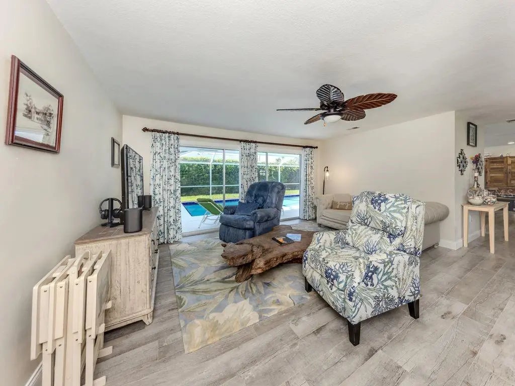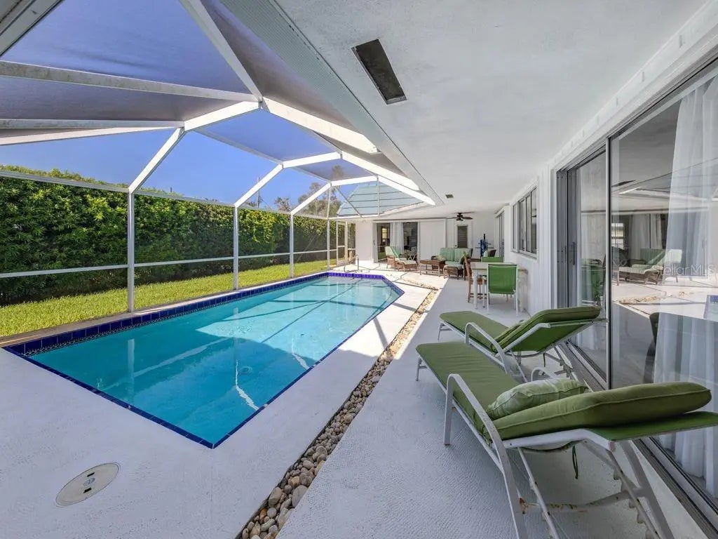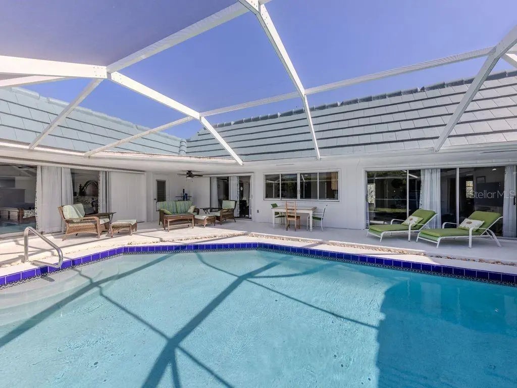 Beautiful Venice Island home located W of 41 between the beach and downtown! Includes mother-in-law suite. Spacious 3 bedroom plus den/office pool home has been lovingly maintained and lends itself perfectly to entertaining, family get-togethers and the Venice-style life in Paradise. Remodeled Master Bath with lg soaking tub, walk-in shower and double sinks. Tiled throughout, most rooms open onto the 38-foot caged lanai and heated pool. 2 bedrooms and the den are in one wing with a MASTER SUITE on the opposite side of the house. Inside laundry, Microwave, clothes washer and clothes dryer about six months old. All other appliances about three years old. The sunny open kitchen is the heart of the home, with one full wall of sliding glass pass-thru windows, miles of counter space, a casual dining area and comfy seating. Oversized laundry room contains oversize storage. The 2-plus car garage has new wind-resistant overhead door. Don't miss this excellent Island opportunity! Mostly turn key furnished available.