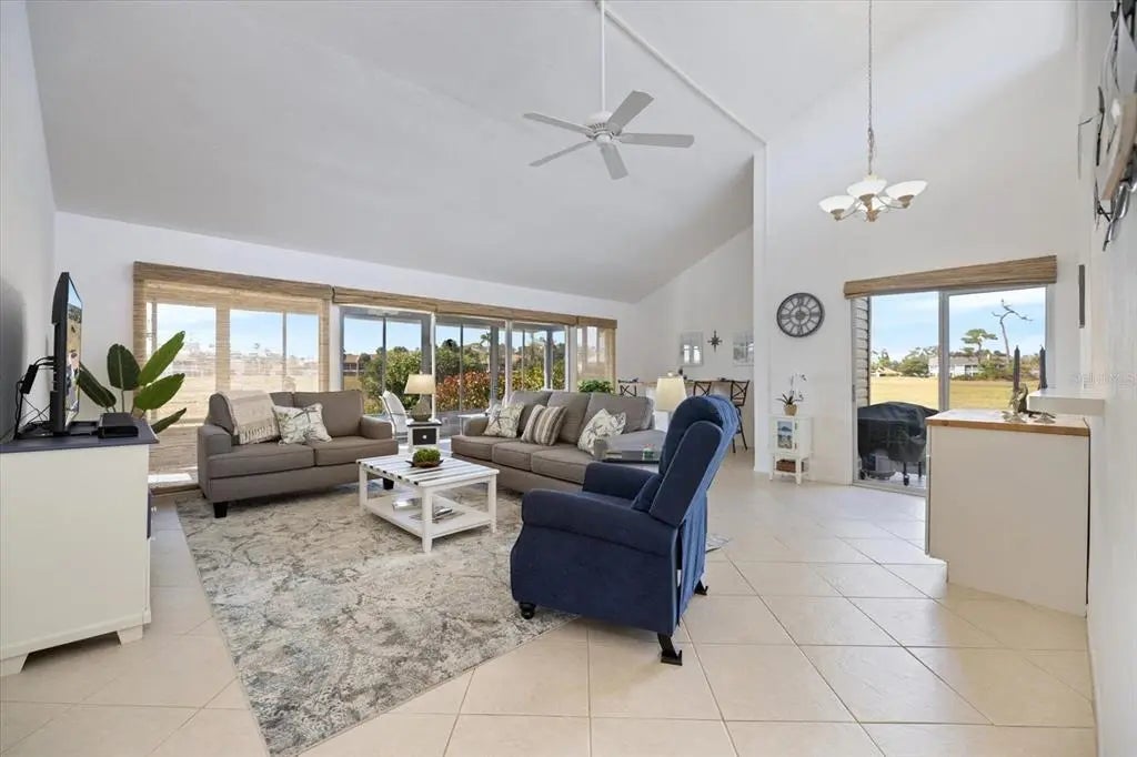 - Interior FeaturesCathedral Ceiling(s), Ceiling Fan(s), High Ceilings, Living Room/Dining Room Combo, Open Floorplan