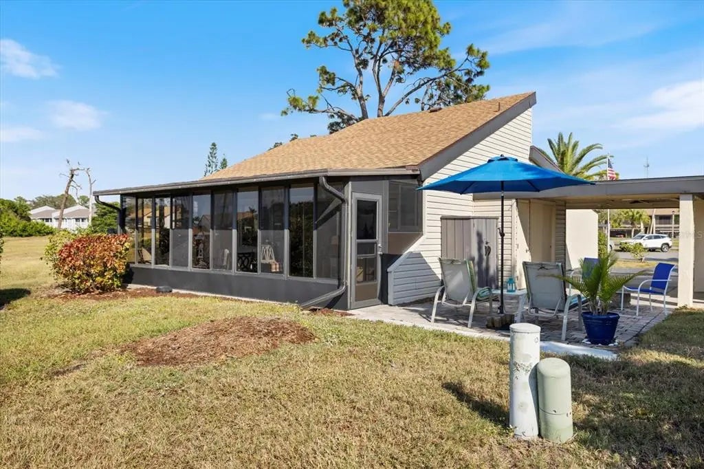 Welcome to 702 White Pine Tree Road, a warm and inviting 2-bedroom, 2-bath villa offered turnkey furnished in the highly sought-after Bird Bay Village. With more than 1,150 square feet of comfortable living space, this home combines a practical layout with a quiet, welcoming setting. As you step inside, the cathedral ceilings immediately open the room and lead your eye toward the peaceful greenbelt behind the villa. The living and dining areas flow nicely together, creating a space that feels open without being overwhelming. The galley kitchen features stainless steel appliances, plenty of cabinet storage, and a convenient pass-through window that keeps the conversation going while you cook. Both bedrooms are located near the front of the home and offer great natural light. The primary bedroom includes its own en-suite bath and generous closet space, while the second bedroom works well for guests, an office, or a hobby room—whatever suits your lifestyle. The lanai is where this home truly shines. It’s a great spot to start your day with coffee or wind down in the evening while enjoying the greenspace view. It feels private, comfortable, and like a natural extension of the main living area. Bird Bay Village is known for its amenities and active lifestyle, offering a Junior Olympic Swimming Pool, tennis and pickleball courts, a fitness center, clubhouse, shuffleboard, library, and a full calendar of activities. Plus, you’re just minutes from Historic Downtown Venice, the Legacy Trail, beaches, restaurants, and everyday conveniences. Move-in ready and fully furnished, this villa makes it easy to settle in and enjoy everything Bird Bay has to offer. Paradise awaits!