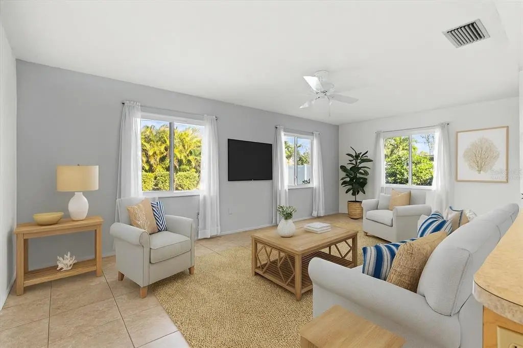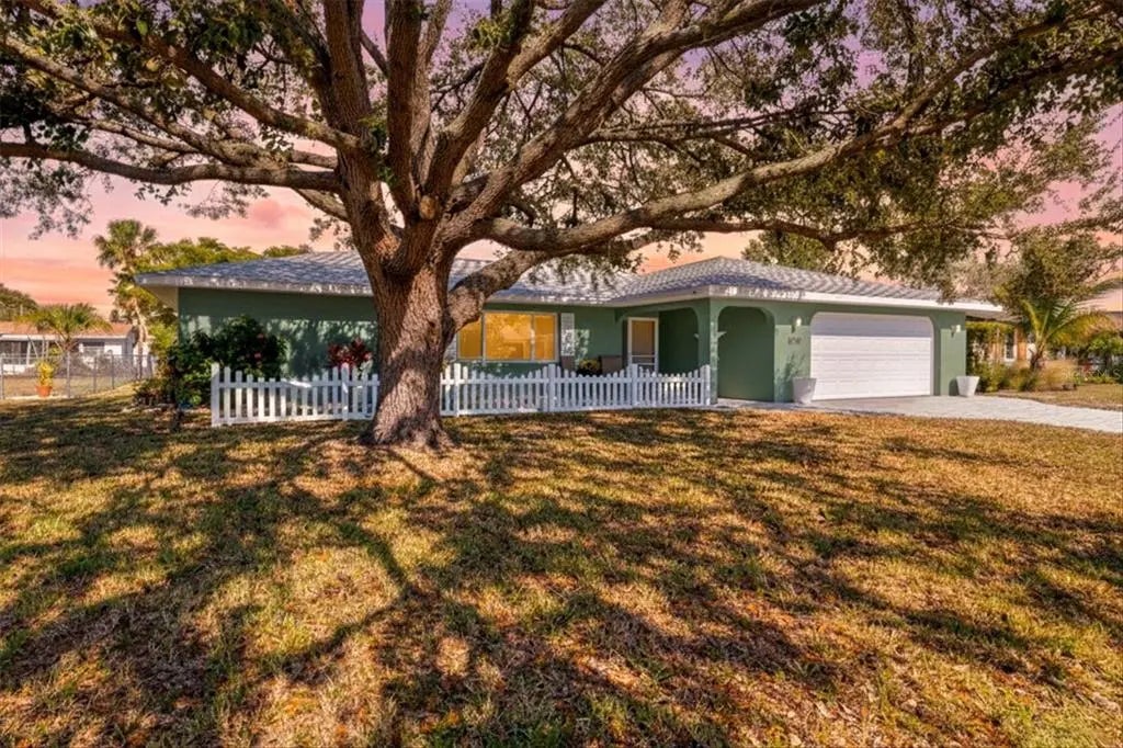 Under contract-accepting backup offers. Welcome to 1316 Fir Avenue, nestled on one of the most attractive streets in the desirable East Gate neighborhood, just a few miles from the Gulf and Historic Downtown Venice. This well-maintained home has been lovingly enjoyed by its owners for many years and offers wonderful curb appeal from the moment you arrive. With 1,549 square feet of thoughtfully designed living space, the floor plan blends traditional charm with modern functionality. A welcoming formal entryway opens to the spacious living and dining room, where a large picture window perfectly frames the sweeping oak tree in the front yard. The clean, well-organized kitchen features raised-panel cabinetry and a peninsula that overlooks the expansive family room highlighted by three large windows, creating a bright and inviting gathering space. Glass sliders lead from the family room into the Florida room enclosed with acrylic windows, an ideal spot to enjoy the Florida sunshine and natural surroundings in comfort throughout the seasons. The home’s split-bedroom layout provides excellent privacy, further enhanced by several tucked-away pocket doors that can separate the kitchen and family room areas when desired. Bedroom windows are thoughtfully positioned higher on the walls to allow in natural light while maintaining privacy. Curb appeal shines with a sparkling paver driveway, fresh exterior paint, and a charming covered entryway. The backyard is equally delightful, featuring a lovely paver patio shaded by a Florida-friendly olive tree, plus an 11' x 10' shed with shelving and electricity - perfect for gardening tools, hobbies, or extra storage. The nearly fully fenced yard offers a flat, grassy area ideal for pets, play, or outdoor enjoyment. Many valuable improvements have been made recently, including a newer roof (2022), 3rd nail installation (2022), water heater (2023), AC system (2018), all impact windows and an according shutter (2018), lanai enclosure (2014), and paver driveway (2024). Enjoy peace of mind and competitive insurance rates with these valuable improvements as well as a location outside the high-risk flood zone. With all these improvements and major systems already taken care of, you can focus on personalizing the interior to make this home truly your own! The historic East Gate neighborhood, established in 1956, is a Venice favorite thanks to its charm, convenience, and community feel. Residents enjoy no deed restrictions, optional neighborhood association, public water and sewer, a neighborhood park, and unbeatable proximity to everyday necessities. From this location, you can walk to parks, restaurants, shopping, medical offices, and are less than 2 miles from Historic Downtown Venice. 1316 Fir Avenue offers affordability, charm, and a prime Venice location—an exceptional opportunity in one of the city’s most beloved neighborhoods.