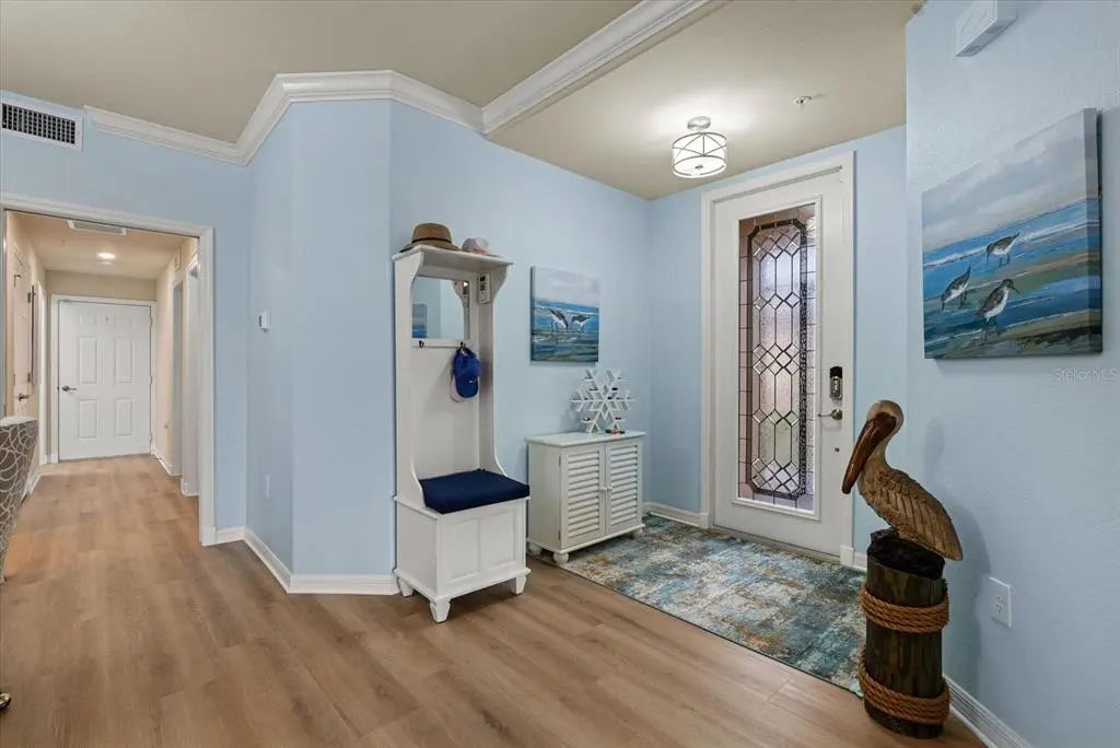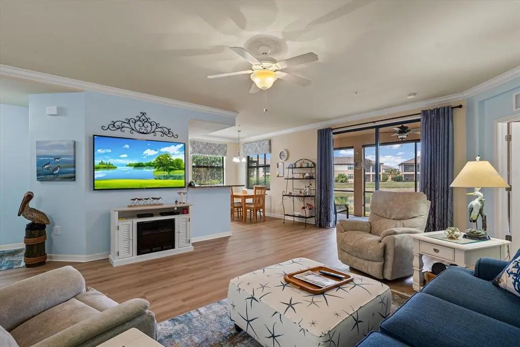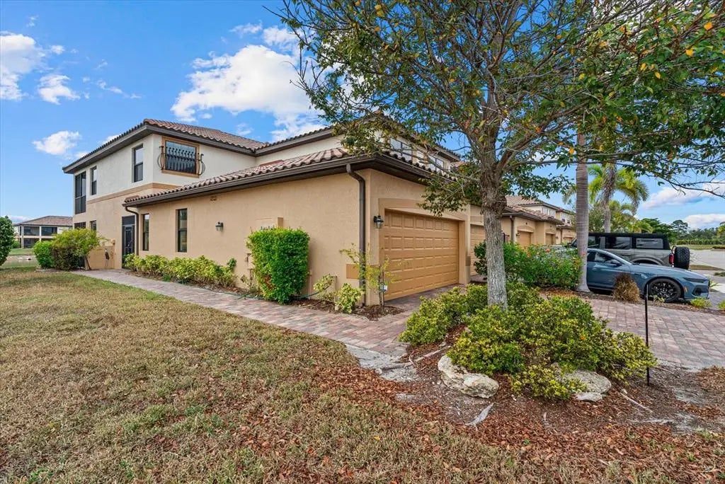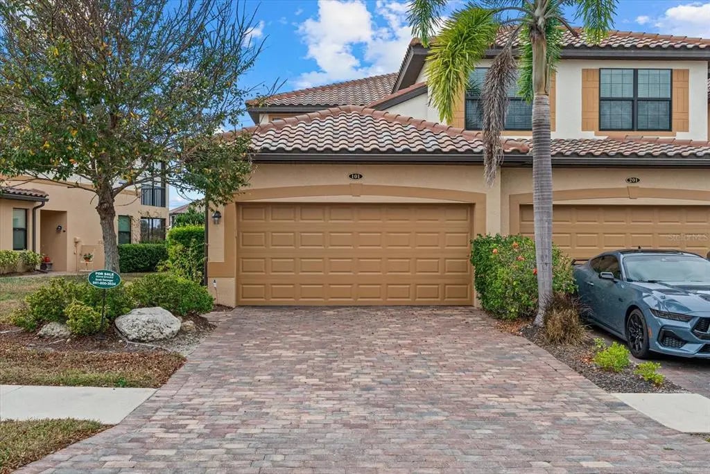 Beautiful first floor 3 bedroom 2 bath coach home with a 2 car garage located at 20181 Ragazza Circle Unit 101 in the highly desirable gated community of Gran Paradiso in Wellen Park. This light and open end-unit offers a peaceful water view and the convenience of no stairs The owner recently installed high end luxury vinyl flooring throughout the entire home. Hurricane rated impact windows come standard along with a fire sprinkler system for added safety and peace of mind. The home features a wonderful split floor plan that completely closes off the guest side of the home, providing excellent privacy for family and visitors. The spacious kitchen includes solid wood cabinetry, stainless steel appliances, and a large breakfast bar that flows into the dining and living areas. The primary suite offers dual walk-in closets, a walk-in shower, separate vanities, and a relaxing garden tub. Enjoy a private screened lanai overlooking the water, perfect for relaxing or entertaining. Furniture may be optional. Gran Paradiso offers resort style amenities including a huge community pool, fitness center, tennis, pickleball, sauna, clubhouse, and miles of walking trails. Wellen Park is located in Sarasota County and features a Venice address, placing you close to Downtown Wellen, shopping, dining, golf, and the Atlanta Braves spring training stadium. A move-in-ready home in one of the most sought-after communities in Southwest Florida.