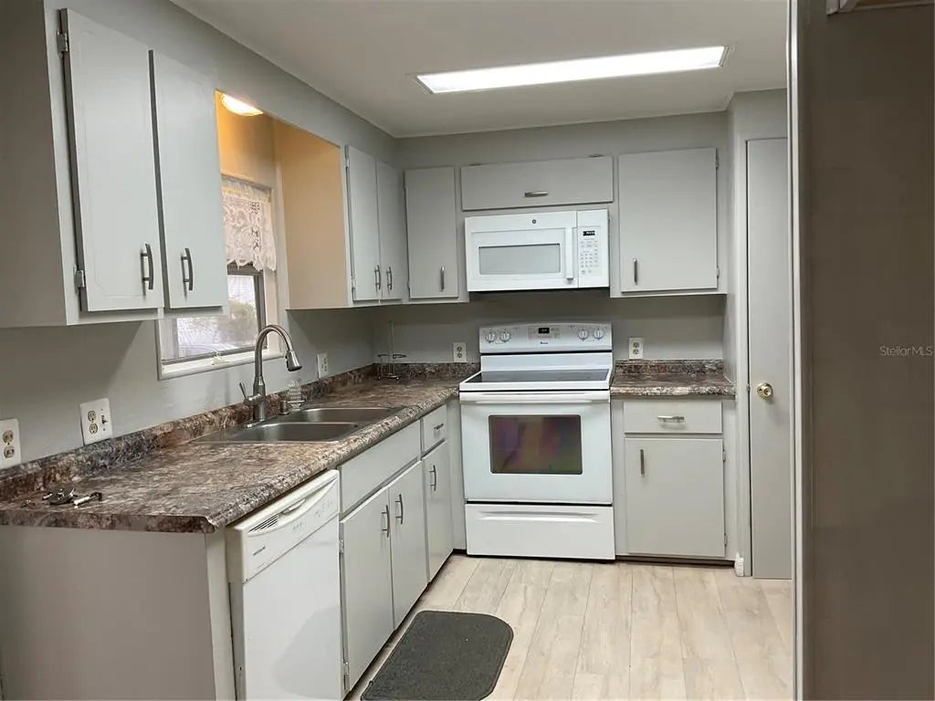 HANDYMAN SPECIAL!!!! Water view on Lake. 2 bedroom, 2 bath own your own land. AC 2021, Carport and roof over Florida Room 2024. Washer 2021, Dryer 2023. INVESTOR ALERT!!!! Flooring needs repair and bathroom pipes need repairs Enjoy your coffee in the spacious, bright and sunny Florida Room. Open floor plan with expansive views of the Lake perfect for relaxing or entertaining year-round. The large primary bedroom includes a large closet for storage with ensuite bathroom. Outside you will love the large shed that includes a washer and dryer plus a workshop area. Located in a quiet friendly community, this home is perfect full time-residence 55+ or seasonal retreat. The park amenities are numerous and include 2 heated pools, 2 hot tubs, saunas, putt-putt golf, a fitness center, tennis courts, bocce ball, corn hole, horseshoes, billiards, ping pong, game room, Tiki Hut, 2 Clubhouses, and free community bus transportation to local shops and outings. There are also numerous activities and social events for all community members to take part in. The low HOA fee includes cable TV and Internet, Lawn Maintenance and all amenities. Located just minutes from downtown Venice and pristine beaches with easy access to shopping, dining, and entertainment options. This is a MUST SEE.