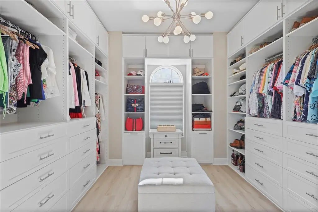 - Interior FeaturesBuilt-in Features, Cathedral Ceiling(s), Ceiling Fan(s), Eating Space In Kitchen, High Ceilings, Kitchen/Family Room Combo, Open Floorplan, Primary Bedroom Main Floor, Smart Home, Solid Wood Cabinets, Split Bedroom, Stone Counters, Thermostat, Walk-In Closet(s), Window Treatments