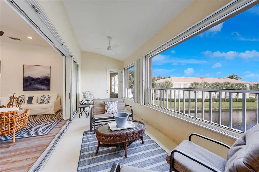 This 2nd Floor Condo w/a POND VIEW is in the DESIRABLE, MAINTENANCE-FREE COMMUNITY OF TRIANO in VENICE, FL! Featuring 3 bedrooms, 2 baths and 2,079 square feet of living space could be the perfect "Florida Paradise"! You will love the privacy and location of this BRIGHT AND SPACIOUS CONDO close to historic downtown Venice, restaurants and beautiful Gulf Coast beaches. Love to GOLF? There are two popular GOLF COURSES near by! A true cook's kitchen with a breakfast bar, newer stainless steel appliances, abundant cabinet storage, granite counter tops, and LOTS of counter space! Spacious primary suite that features a walk-in closet, walk-in shower, soaking tub & dual sinks and vanities! Inside Laundry Room with washer/dryer. Step outside from the living room or primary suite to your spacious outdoor living space and enjoy the RELAXED COASTAL LIFESTYLE! Sit back, relax, and enjoy the peace & tranquility while enjoying the Florida sunshine in your screened in lanai overlooking the serene pond and fountain views. Live the Florida lifestyle & make this your home! Private, gated, and maintenance free community makes this Condo a great value. RESORT STYLE AMENITIES include a clubhouse with kitchen and social room, fitness room, and heated pool for fun water activities. OWN A PIECE OF PARADISE IN VENICE, FL! Check out the 3D Virtual Tour #1 and Video #2
