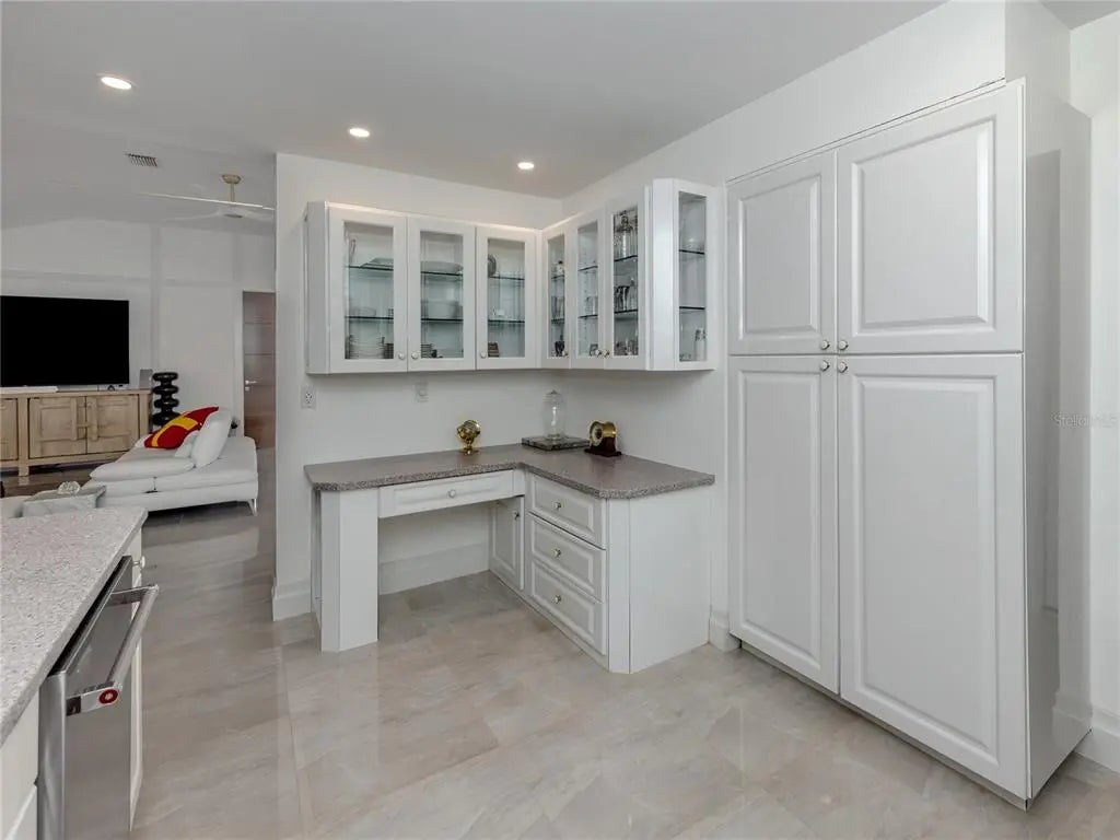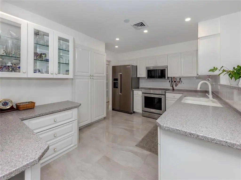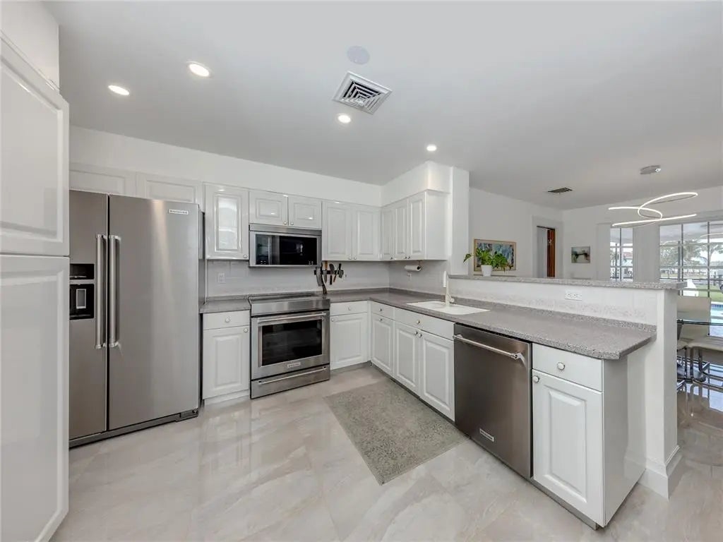 This exceptional home is perfectly positioned on the coveted north end of Venice Island, offering nearly a half-acre of prime waterfront living along the Intracoastal Waterway. With a 12,000-lb. electric boat lift and no bridges to the Gulf of Mexico, this property is a dream for avid boaters and water enthusiasts. Directly across from the Roberts Bay Sports Boating Area and just moments from the Yacht Club and Venice Youth Boating Association, the location delivers unmatched access to world-class recreation. Whether you envision a full remodel or a complete custom rebuild, this homesite provides extraordinary potential. Conveniently located just minutes from the Venice Island Airport, golf, tennis, pristine beaches, and the charming downtown Venice Avenue—known for its dining, boutique shopping, farmers market, and year-round festivals—this is one of the most desirable lifestyle settings on the island. Inside, the home has already begun its transformation, featuring new tile flooring throughout the main living area. The entrance welcomes you with abundant natural light from the southern exposure. The expansive great room and dining area boast cathedral ceilings and stunning water views through fully collapsing sliding glass doors that seamlessly blend indoor and outdoor living. The bright, spacious kitchen is appointed with light cabinetry and Corian countertops. A newly enhanced second primary suite offers an impressive walk-in closet with custom built-ins. The main primary suite is generously sized, complete with a Jacuzzi tub overlooking the water—an ideal retreat for relaxation. The outdoor living area is designed for comfort and entertainment, featuring a large, covered lanai with cool deck flooring and ample dining space. The well-maintained saltwater pool provides a serene vantage point to enjoy peaceful ICW views in total privacy. An oversized two-car garage adds exceptional functionality, offering abundant storage, workspace, and an adjacent laundry room. This split-bedroom ranch home is a rare opportunity to secure an extraordinary waterfront property in one of Venice Island’s most sought-after locations.