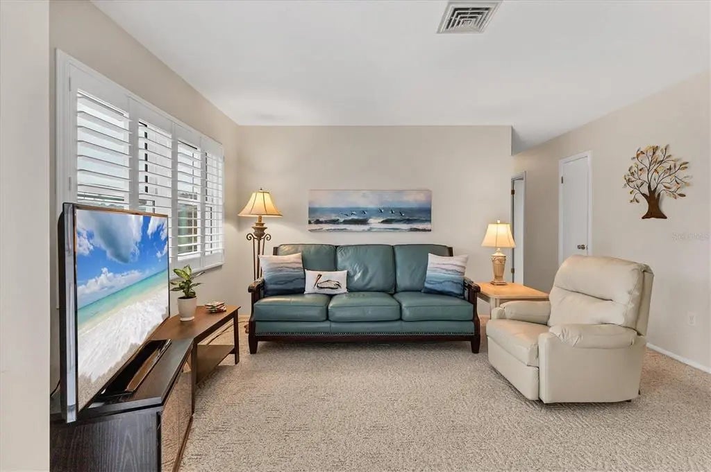 Discover the charm of coastal living at 1018 Beach Manor Cir, #40, a welcoming villa tucked inside the friendly Beach Manor Villas South community on beautiful Venice Island. This well-kept 2-bedroom, 1.5-bath home offers comfort and peace of mind thanks to a number of thoughtful updates, including a new electrical panel (2018), updated interior and exterior outlets, a 2018 water heater, impact-resistant windows and doors, R-38 insulation, partial PVC water line updates, and a new A/C system installed in 2022. For extra privacy, each attached villa features its own block wall, giving you double-layer separation between units. The community has also been well cared for, with all roofs replaced between 2021 and 2022. Inside, you’ll find a warm, inviting eat-in kitchen—perfect for morning coffee or casual meals. A flexible bonus/family room gives you plenty of options: create a home office, hobby room, den, or rec space. Natural light fills the home, giving it an open, welcoming feel, and you can enjoy fresh air or quiet evenings on the outdoor patio. The villa is offered furnished, with only a few personal items excluded. You’re just minutes from historic Downtown Venice, where a quick golf cart ride brings you to charming boutiques, great restaurants, art galleries, and local attractions. Service Club Park is your closest beach at just .9 miles away and the iconic Sharky’s on the Pier—famous for its beachfront dining— is only 1.2 miles away, making sun, sand, and seaside meals part of your everyday lifestyle. With modern updates, an unbeatable location, and a laid-back coastal vibe, this villa is ideal whether you’re looking for a winter getaway or a year-round home in paradise.
