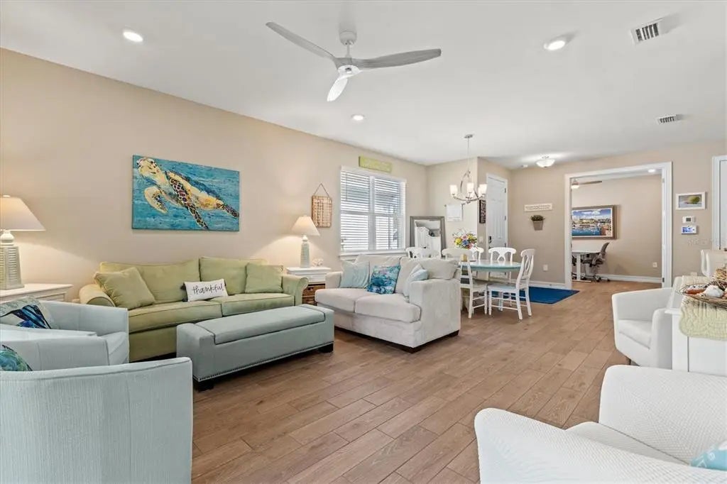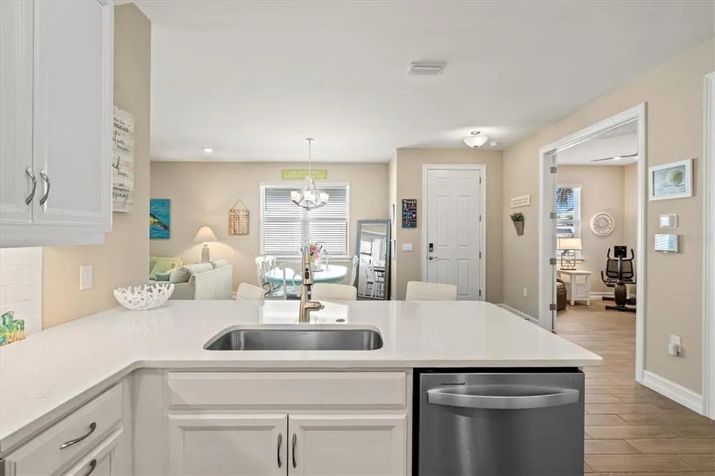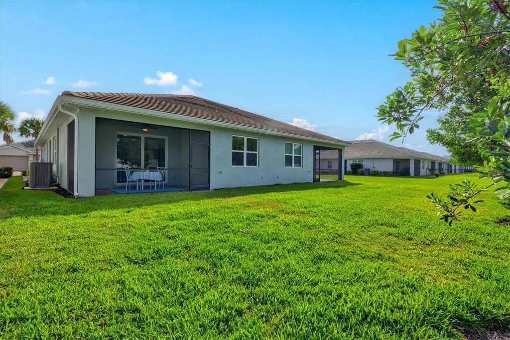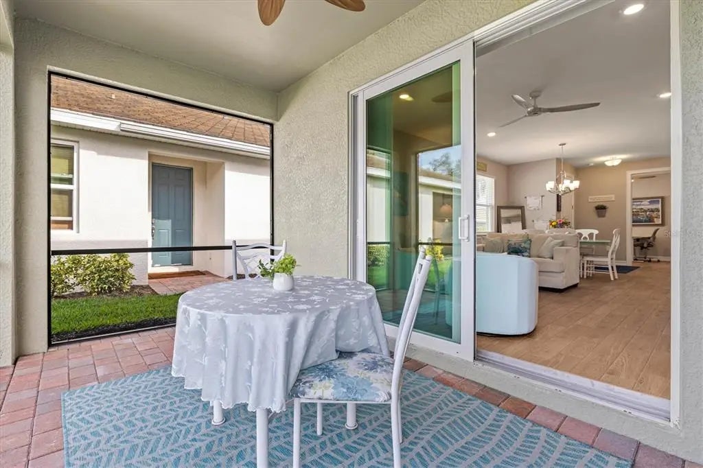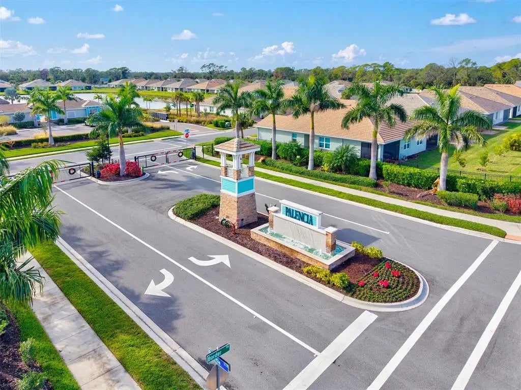 A must-see villa in the desirable Palencia community of Venice, FL! Built in 2023, this beautifully upgraded 2-bedroom, 2-bath home with a den and screened lanai is positioned on a staggered lot, offering added privacy. All furnishings are negotiable, creating an ideal move-in-ready or turnkey opportunity. This home features 9-foot ceilings and 8-foot doors with lever handles throughout, impact-resistant windows and sliding glass door, cordless window treatments, comfort-height toilets, and stained and sealed floor grout. The bright chef’s kitchen is a standout, featuring under-cabinet lighting with dimmers, a tiled backsplash, soft-close cabinets and drawers with pull-out shelving—including trash and recycling bins—quartz countertops, stainless steel appliances, an oven with air-fryer capability, a three-tier dishwasher, and two spacious pantries. The owner has added numerous upgrades, including five energy-efficient ceiling fans, a dining room light fixture, a whole-house gutter system, a salt-free water purification system, a Reme Halo LED air purification system with UV blue light, a Drain Guard on the HVAC system, a whole-home surge protector, keyless entry, smart-home features with ADT security services available, and additional recessed lighting. Custom California Closets provide exceptional organization in the primary walk-in closet, laundry room, and garage. Palencia offers a resort-style lifestyle with a beautiful community pool, clubhouse, bocce ball courts, and two scenic lakes with fountains. Low HOA fees—with no CDD fee—include lawn care, mulching, exterior painting of the villas, and roof replacement, providing truly low-maintenance living. Ideally located for beachgoers and golfers alike, this home offers a quick commute to several top area beaches and golf courses, along with plentiful dining and shopping options nearby. Just minutes from Venice Island and surrounding beaches, it is ready for you to enjoy the very best of the Florida lifestyle.