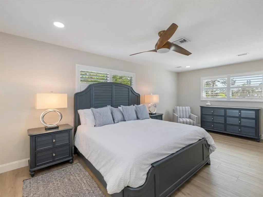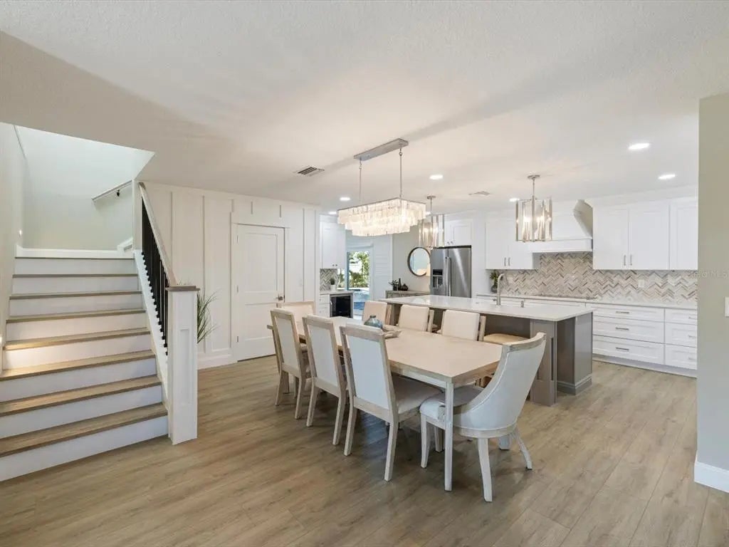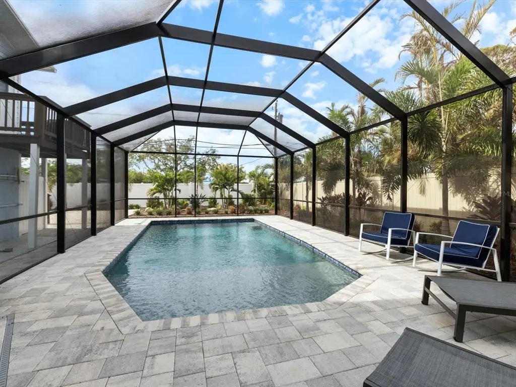 Welcome to your private luxury retreat on Venice Island, where coastal elegance meets exceptional craftsmanship. This stunning residence has been completely remodeled from top to bottom, offering peace of mind, refined finishes, and effortless island living just moments from the beach and downtown Venice. Step inside to discover a show stopping chef’s kitchen designed for both everyday living and entertaining. Custom solid wood cabinetry with dovetail soft close drawers is paired with a spacious walk in pantry and a thoughtfully designed wine and coffee bar. High end KitchenAid stainless steel appliances from 2023 include an induction cooktop, convection oven, microwave, two dishwashers, and a wine refrigerator creating a kitchen as functional as it is beautiful. Every detail of the home reflects quality and sophistication, from luxury finishes and upgraded bathrooms to a cohesive modern design throughout. Major systems have been fully updated, including electrical, air ducts, interior plumbing, drain and water lines, and underground plumbing to the street completed between 2022 and 2023, providing confidence and long term reliability. The primary bedroom is conveniently located on the first floor and features a spacious layout with a spa inspired ensuite bath, offering comfort, privacy, and ease of living. Additional bedrooms provide flexible space for family, guests, or a home office. Convenience is unmatched with two laundry rooms, one on each level, plus an additional laundry area in the fully remodeled studio apartment above the garage. Interior upgrades include moisture resistant luxury vinyl plank flooring, new drywall and paint, LED lighting, solid core interior doors, hurricane rated exterior doors completed in 2023, plantation shutters from 2023, Hunter Douglas VertiGlide shades added in 2024, and custom closet systems by Sunset Closets from 2024. A Ring camera system added in 2023 enhances security and peace of mind. Outside, the property is equally impressive with Hardie Board siding, a 50 year metal roof installed in 2023, PGT hurricane rated Low E windows added in 2023, new gutters from 2023, and a beautifully finished paver driveway completed in 2023. The backyard is a true island oasis featuring a 15 by 28 foot Aquatec saltwater pool with PebbleTec finish, sun shelf, heater, and no see um screened enclosure completed in 2023 perfect for year round enjoyment. Lush landscaping, vinyl fencing, and concrete epoxy finishes in the carport, porch, and garage complete the outdoor spaces. Adding even more value is a fully remodeled studio apartment above the garage ideal for guests, multi generational living, or rental income. A separate gated entrance provides secure storage for a boat or RV, a rare and highly desirable feature on the island. Located in a preferred X flood zone, flood insurance is not required. Just a short walk to Venice’s pristine beaches, charming downtown, dining, and shopping, this exceptional home offers the ultimate combination of luxury, location, and lifestyle.