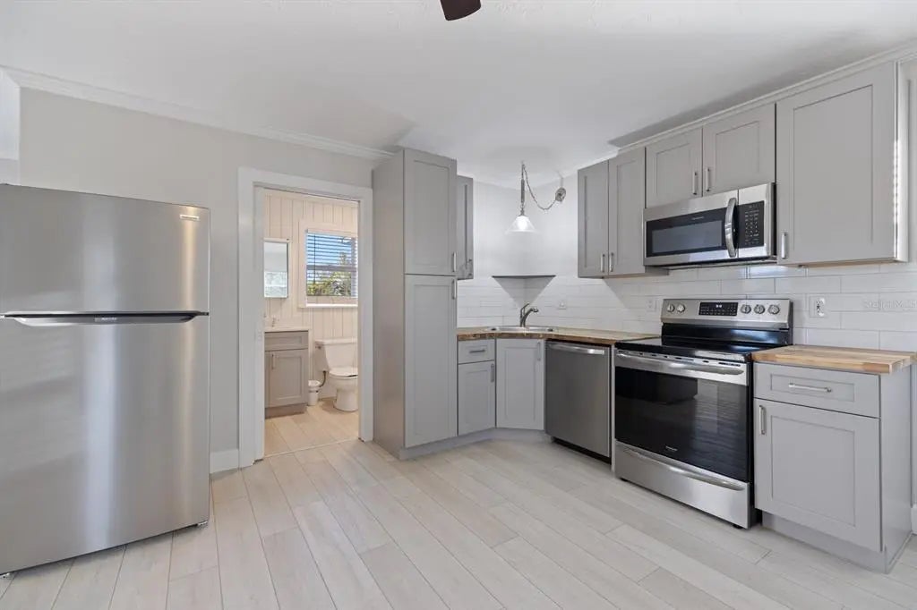 Under contract-accepting backup offers. (Kick-out Clause) Welcome to your private luxury retreat on Venice Island, where coastal elegance meets exceptional craftsmanship. This stunning residence has been completely remodeled from top to bottom, offering peace of mind, refined finishes, and effortless island living just moments from the beach and downtown Venice. Step inside to discover a show stopping chef’s kitchen designed for both everyday living and entertaining. Custom solid wood cabinetry with dovetail soft close drawers is paired with a spacious walk in pantry and a thoughtfully designed wine and coffee bar. High end KitchenAid stainless steel appliances from 2023 include an induction cooktop, convection oven, microwave, two dishwashers, and a wine refrigerator creating a kitchen as functional as it is beautiful. Every detail of the home reflects quality and sophistication, from luxury finishes and upgraded bathrooms to a cohesive modern design throughout. Major systems have been fully updated, including electrical, air ducts, interior plumbing, drain and water lines, and underground plumbing to the street completed between 2022 and 2023, providing confidence and long term reliability. The primary bedroom is conveniently located on the first floor and features a spacious layout with a spa inspired ensuite bath, offering comfort, privacy, and ease of living. Additional bedrooms provide flexible space for family, guests, or a home office. Convenience is unmatched with two laundry rooms, one on each level, plus an additional laundry area in the fully remodeled studio apartment above the garage. Interior upgrades include moisture resistant luxury vinyl plank flooring, new drywall and paint, LED lighting, solid core interior doors, hurricane rated exterior doors completed in 2023, plantation shutters from 2023, Hunter Douglas VertiGlide shades added in 2024, and custom closet systems by Sunset Closets from 2024. A Ring camera system added in 2023 enhances security and peace of mind. Outside, the property is equally impressive with Hardie Board siding, a 50 year metal roof installed in 2023, PGT hurricane rated Low E windows added in 2023, new gutters from 2023, and a beautifully finished paver driveway completed in 2023. The backyard is a true island oasis featuring a 15 by 28 foot Aquatec saltwater pool with PebbleTec finish, sun shelf, heater, and no see um screened enclosure completed in 2023 perfect for year round enjoyment. Lush landscaping, vinyl fencing, and concrete epoxy finishes in the carport, porch, and garage complete the outdoor spaces. Adding even more value is a fully remodeled studio apartment above the garage ideal for guests, multi generational living, or rental income. A separate gated entrance provides secure storage for a boat or RV, a rare and highly desirable feature on the island. Located in a preferred X flood zone, flood insurance is not required. Just a short walk to Venice’s pristine beaches, charming downtown, dining, and shopping, this exceptional home offers the ultimate combination of luxury, location, and lifestyle.