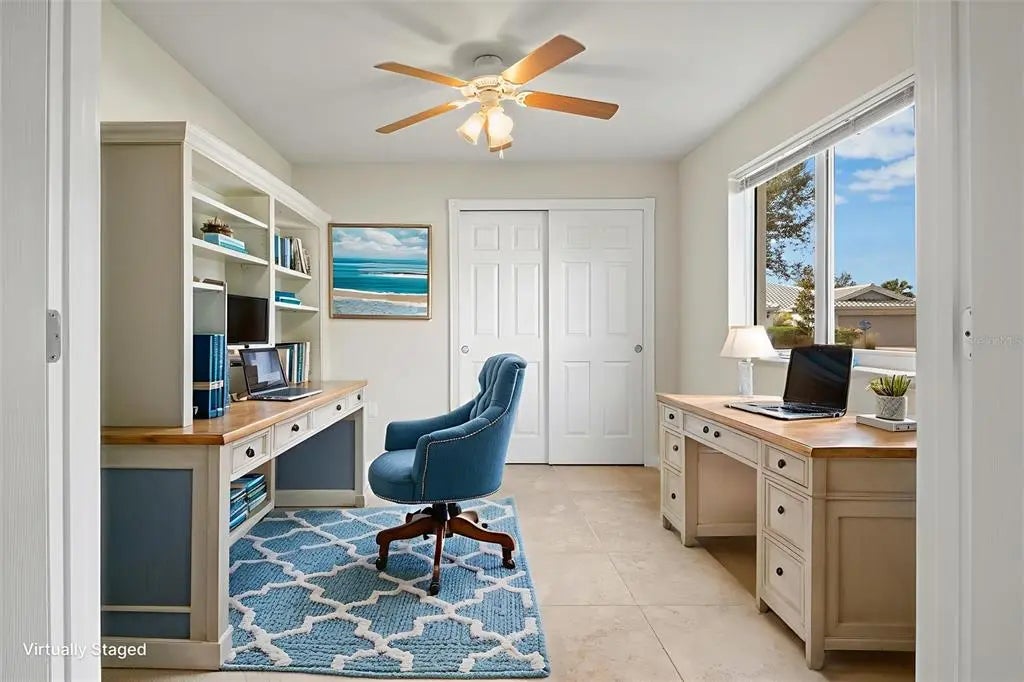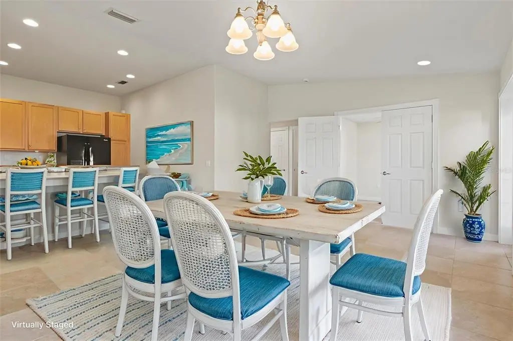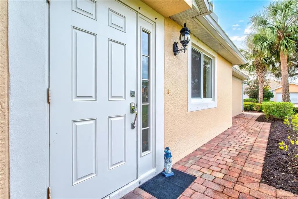 This DiVosta Carrington attached villa delivers 1,541 square feet under air and 2,128 square feet total, offering a genuine three-bedroom, two-bath floor plan paired with a full two-car garage. Positioned as one of the most competitively priced three-bedroom homes in IslandWalk, it stands out as an exceptional value and is ready for immediate enjoyment by its next owner. Situated on an oversized lot with generous space between neighboring units, the home offers added privacy rarely found in attached villas. The open floor plan showcases beautiful tile flooring throughout and flows seamlessly to a screened patio with tranquil water views, creating an ideal setting for relaxing or entertaining. The sellers have just had the interior freshly repainted, giving the home a clean, updated feel. This villa has been exceptionally well maintained and it shows. The AC was replaced in July of 2020 and the hot water heater was replaced in December of 2023, providing added peace of mind. IslandWalk is one of Venice’s most vibrant lifestyle communities, offering a full-time activities director, two clubhouses, resort-style pools, pickleball and tennis courts, miles of scenic walking, biking, and golf-cart paths, and a wide variety of clubs and social events. Just a short bike ride to the Atlanta Braves Stadium, residents also enjoy easy access to the nearby marketplace with Publix, dining, and shopping, as well as Downtown Wellen Park featuring an 80-acre lake, waterfront dining, retail, and live entertainment. A brand-new Costco is only minutes away. The IslandWalk HOA includes grounds maintenance, cable, internet, amenities, and 24-hour guard-gated security. This home is NOT located in a flood zone and offers a low CDD fee. Don’t miss this outstanding opportunity, be sure to view the 3D Matterport and drone tours.