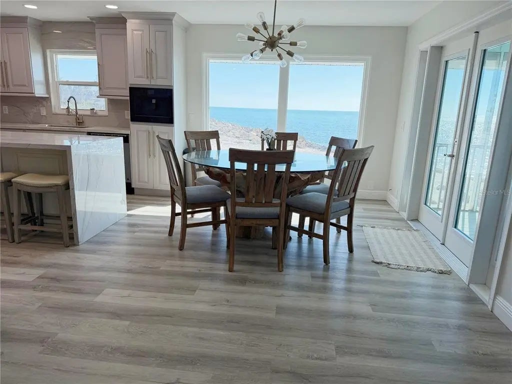 Wake up to the sound of the Gulf and step directly onto your balcony from the primary suite, where French doors frame expansive water views. This elevated Manasota Key residence offers a rare blend of openness, tranquility, and effortless coastal living, with approximately 134 feet of frontage along a walkable, sandy beach.Inside, the home has been updated with a clean, modern coastal aesthetic that feels both current and timeless. Vaulted ceilings and an open great-room layout create a bright, airy atmosphere designed around the views, while the kitchen and dining area feature quartz countertops and flow seamlessly into the living space—ideal for entertaining or simply enjoying the rhythm of the shoreline. French doors throughout connect indoor living to the expansive Gulf-view balcony, perfect for morning coffee, taking in Gulf sunsets, or evenings under the stars.The primary suite is a true retreat, featuring direct balcony access, a spa-inspired ensuite bath with walk-in shower and soaking tub, and two walk-in closets designed for everyday comfort. A Gulf-front guest bedroom also enjoys water views, offering guests the same connection to sand and sea. Covered parking beneath the home includes a convenient ground-level bath with shower—perfect after a day at the beach.As an added bonus, the property includes a deeded pedestrian easement providing access to the bay. This is relaxed island living at its best, where days are shaped by tides, light, sea air, and a home that’s ready to be enjoyed today.