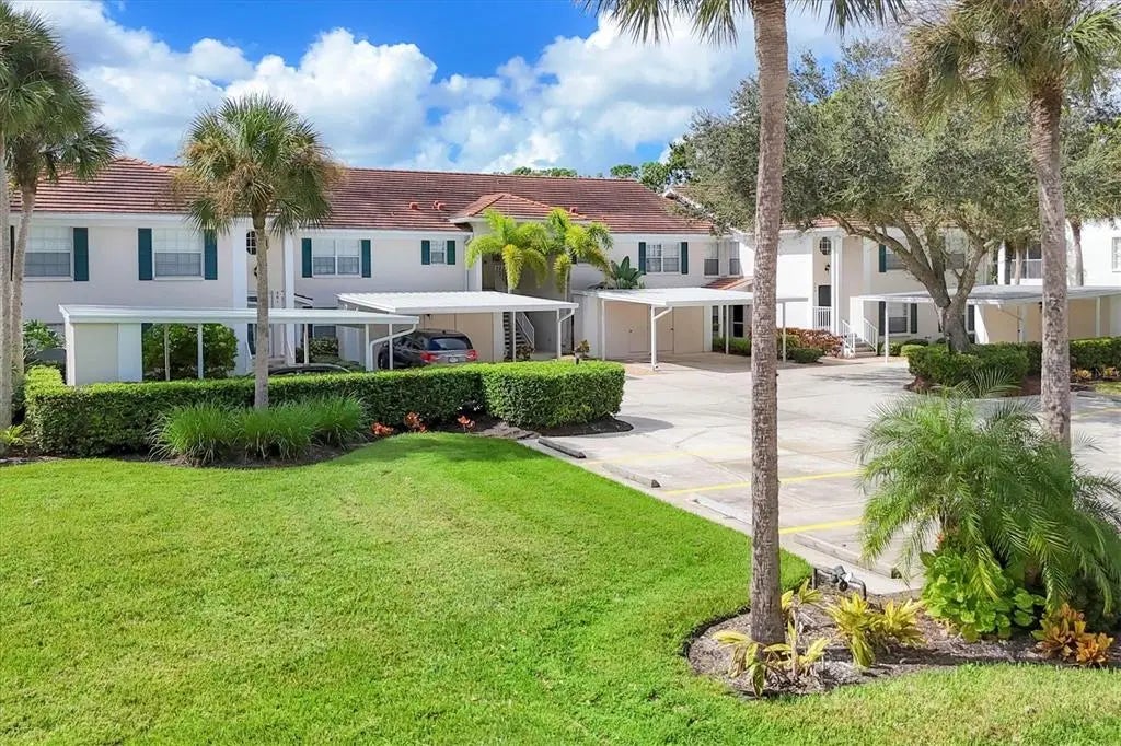 REDUCED $20,000! Air conditioning, roof and water heater all replaced within last 5 years! Light, bright and well-maintained Plantation jewel in Venice is move-in ready. Offers 3 bedrooms, 2 full baths, plantation shutters throughout, and end-unit privacy with stunning golf views of the Bobcat Course from the screened lanai balcony. Located in the highly-desired St. Andrews Park at the Plantation Golf and Country Club, new owners will appreciate the updated kitchen, elevated ceilings, laundry closet with cabinets, guest parking and carport with locked storage area. With no CCD fees, this well-established community welcomes both golf carts and golfers who may wish to optionally join the Plantation Golf and Country Club. All residents enjoy low-cost utilities through association fees that cover water/sewer, cable, trash, gardening and exterior maintenance--and a location that is just minutes from Venice's stunning beaches, plentiful dining options, shopping, historic downtown activities and lively theater performances. Assessment for repainting exterior of building will be paid by seller.