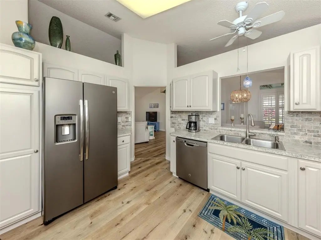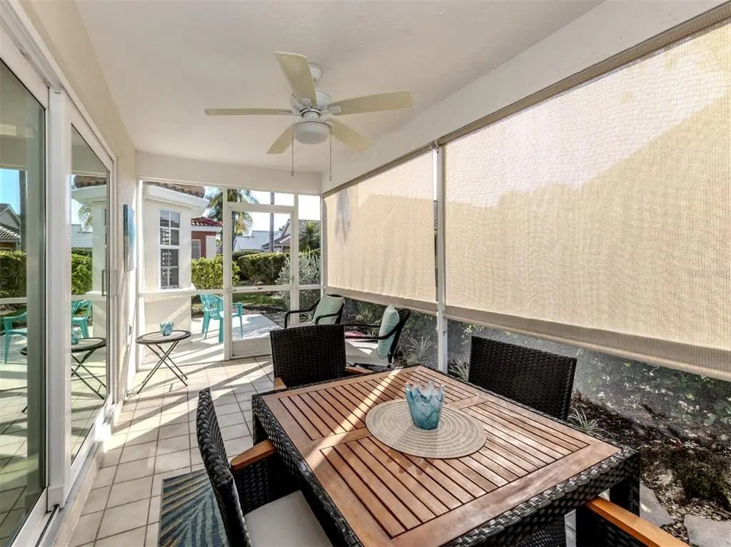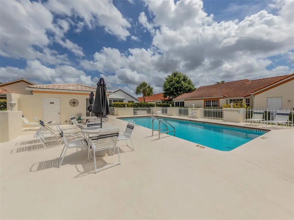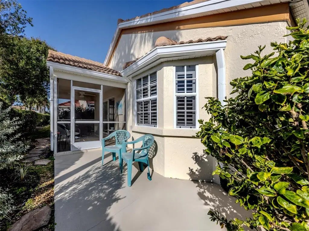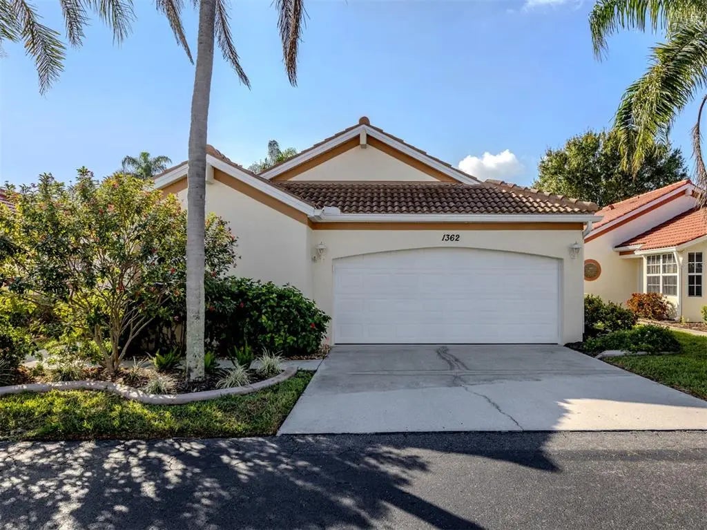 Under contract-accepting backup offers. This beautifully appointed two-bedroom, two-bath furnished villa offers comfort, style and convenience in a serene setting. Designed with tasteful finishes throughout, the open plan creates a light and welcoming atmosphere, ideal for everyday living and entertaining. The spacious living area flows seamlessly to a peaceful private lanai, where you can relax and enjoy the lush landscaped surroundings. The well-equipped kitchen and baths reflect quality and thoughtful design. Some recent updates include a new roof, water heater, air-conditioning unit, hurricane windows/doors, and the list goes on. A two-car garage provides ample storage and convenience, while the villa's prime location places you just minutes from beautiful sandy beaches, as well as shopping, dining and top-tier medical facilities. This community has a refreshing pool where you can relax and unwind or go just a few minutes up the road and you can stick your toes in the sand. This is the best of both worlds. Whether you are looking for a day at the beach or to explore the vibrant local scene, this villa provides an ideal base for your lifestyle.
