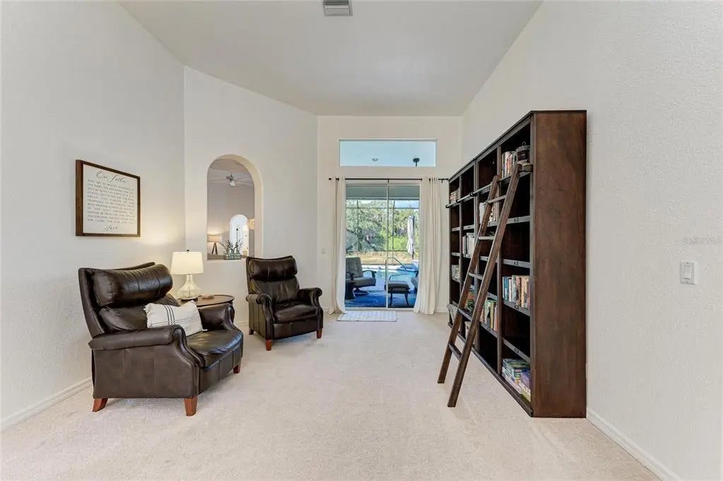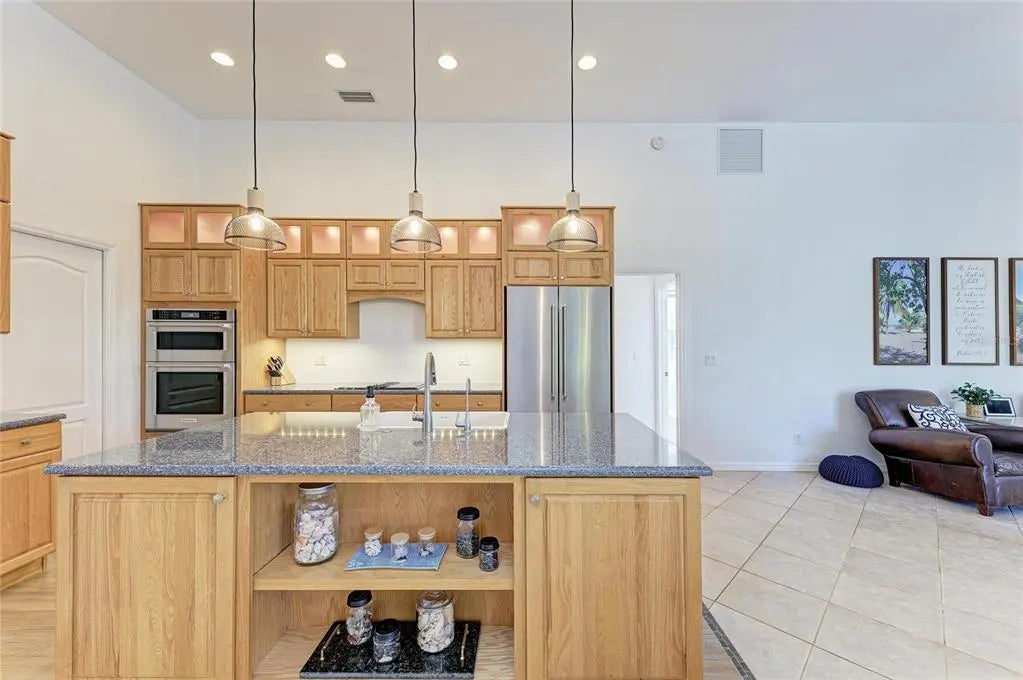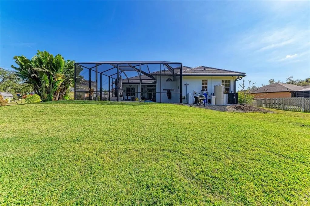Under contract-accepting backup offers. AUBURN ACRES – This is your opportunity to own a home in one of Venice’s most desirable and exclusive neighborhoods. Auburn Acres consists of just 9 homes and is centrally located with easy access to both the highway and the beach. Set on over an acre, this property offers exceptional privacy and beautiful natural surroundings. Tucked away at the end of a cul-de-sac, the home is framed by lush tropical landscaping and overlooks a private pond and preserve, creating a peaceful retreat. A long driveway leads to the side-loading garage and double front-door entry. This is an oversized garage with a workshop area! Upon entering, you’re immediately greeted with stunning views of the pool, pond, and wooded backdrop. The home features high ceilings and bright, open spaces, with a well-designed layout that includes a separate living room and dining room, kitchen with eating nook, and a spacious family room—ideal for both everyday living and entertaining. Two generously sized guest bedrooms share a full, updated bathroom on one side of the home, while the private owner’s suite is located on the opposite side. The primary suite offers tranquil views of the pond and tropical landscaping and includes an en-suite bath with dual vanities, two closets, and an updated walk-in shower. The updated kitchen is a standout, featuring quartz countertops, solid wood soft-close cabinetry with glass uppers, a large island with a farmhouse sink, convection oven, and a coffee/wine/snack bar—perfect for hosting. The sellers have invested nearly $200K in recent upgrades, including: 2024 Roof & Gutters, 2024 Pool Heater, 2021 Septic Tank & Drain Field, 2024 Well Pump, 2023 Exterior Paint, 2023 Pool Renovation, 2023 Lanai Cage, Newly Painted Pool Deck, Epoxy Garage Flooring & Updated Lighting, Whole-House Reverse Osmosis System, 2021 Water Softener, Water Pressure Tank Replaced, New Refrigerator & Dishwasher, 2023 Oven/Microwave, 2023 Pool Pump. This exceptional property combines space, privacy, thoughtful upgrades, and an unbeatable location—truly a rare find in Venice