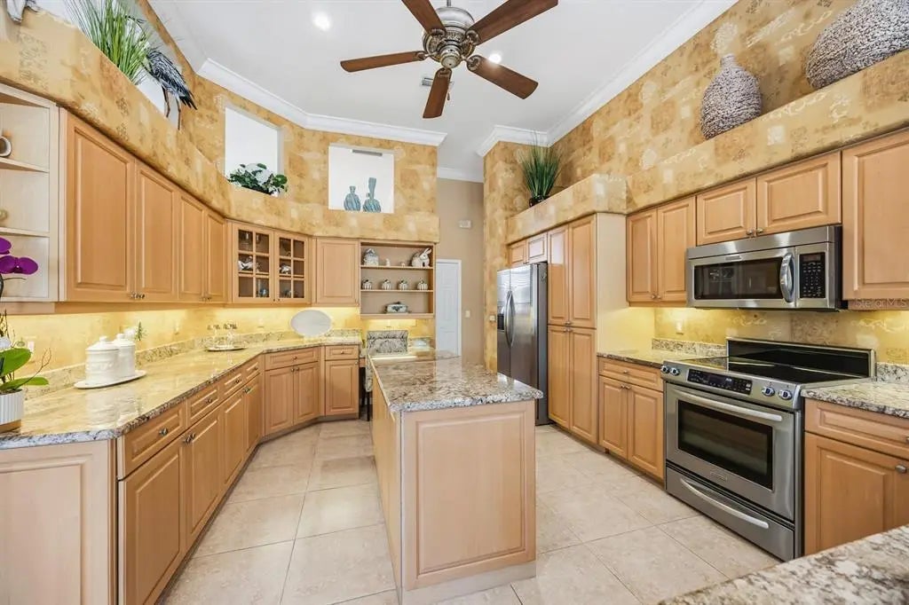 DO YOU WANT TO LIVE IN PARADISE?? TAKE A LOOK AT THIS BEAUTIFUL CUSTOM-BUILT HOME IN THE PREMIER GATED COMMUNITY OF SOUGHT AFTER SAWGRASS WHICH OFFERS A HEATED POOL, FITNESS CENTER, CLUBHOUSE AND A PICKLE BALL COURT WITH LOTS OF ACTIVITIES TO ENJOY. YOU ARE ONLY 4 MILES FROM THE HISTORIC DOWNTOWN VENICE, SEVERAL BEACHES INCLUDING A DOG BEACH, SHOPPING, DINING, AND CULTURAL ATTRACTIONS. AS YOU ENTER THE FRONT DOUBLE GLASS DOORS YOUR VIEW IS BREATHTAKING OF THE LUSH LANDSCAPING WHICH DISPLAYS A UNIQUE GARDEN WATERFALL SURRONDING THE POOL. THERE ARE SOARING 12 FOOT SEILINGS IN THE FORMAL DINING ROOM, FORMAL LIVING ROOM AND MASTER BEDROOM WITH 5 INCH CUSTOM CROWN MOLDING THROUGH OUT THE WHOLE HOME. THE GOURMET KITCHEN HAS AN ISLAND WITH GRANITE COUNTERTOPS, RAISED PANEL MAPLE CABINETS, PULL OUT DRAWS, PANTRY, STAINLESS STEEL APPLIANCES, TRASH COMPACTOR, PLANT SHELVES AND UNDER CABINET LIGHTING. THE LAUNDRY ROOM HAS MULTIPLE CABINETS, A FOLDING TABLE AND BUILD IN IRON BOARD. THIS IS A SPLIT FLOOR PLAN WITH 2 SPACIOUS GUEST BEDROOM AND BATH. SOLID CORE INTERIOR DOORS FOR NOISE REDUCTION. DOUBLE DOORS TO THE MASTER SUITE WITH TREY CEILINGS WITH GLASS SLIDING DOORS OUT TO YOUR LANAI AND A LARGE SITTING AREA FOR RELAXTION. GARDEN TUB, WALKING IN SHOWER WITH GLASS BLOCK FOR PRIVACY, DOUBLE SINKS AND A CONFORT HIGH TOILET. THE HOME HAS 20 BY 20 TILE WITH NEW LUXURY VINYL IN THE FAMILY ROOM, 2 GUEST BEDROOMS, OFFICE AND MASTER SUITE. THERE IS NO CARPET IN THIS HOME. IT HAS A TRANE 16 SEER WITH 4 ZONES FOR MAXIMUM EFFICIENCY. WINDOW TREATMENTS, BLINDS, 7 CEILING FANS INCLUDING ONE IN THE GARAGE, LIGHTING AND MARBLE WINDOW SILES. THERE IS A BRANDNEW ROOF PUT IN 2025. SECURITY SYSTEM AND SURROUND SOUND THROGHTOUT THE HOME. CONVENIENT TO GROCERY STORES AS WELL AS THE NEW SARASOTA MEMORIAL HOSPITAL. THIS LOCATION HAS IT ALL, LOW HOA'S AND NO CDD FEES AND NOT IN A FLOOD ZONE. A NINE HOLE GOLF COURSE MEANDERS THROUGH THE COMMUNITY WITH LUSH LANDSCAPING AND LAKES. SCHEDULE YOUR PRIVATE TOUR TODAY.