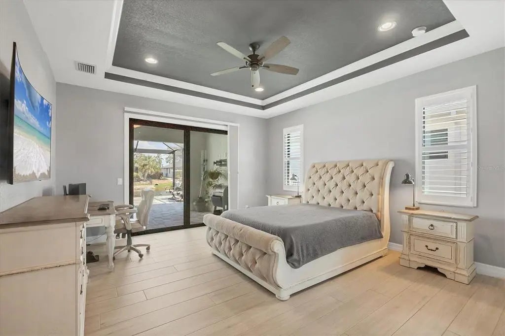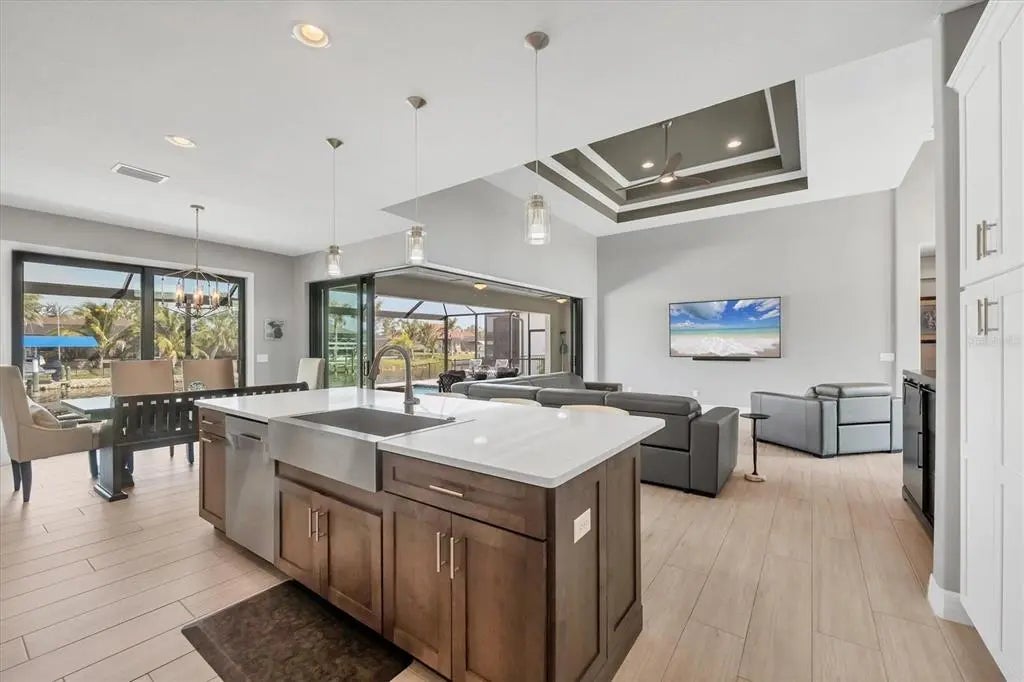 This is what you have been looking for in a Southwest Gulf Coast Florida Boating home. Wait! This home has an option to ASSUME a VA LOAN at 2.625! Call for important information on this opportunity. This three bedroom two bath pool home with a Den sits on the Santa Cruz Waterway which takes you directly to the Lock System out to the Charlotte Harbor. Whether fishing or engaging in leisure water activities your journey can take you to the Intercoastal Waterway and out to the Gulf, making this an ideal location. The bridges (10 ft high with the water depth of 6-9 feet) makes this the perfect boating experience to accommodate your Dream Boat. A Sea Wall is in place already at the home for you to envision your Dock with a Lift and is already equipped with a light post, electric and water. Rinse off after your excursion in the outdoor shower by the expansive pool area. The Lanai where you will relax by your salt water pool with a sundeck and beautiful pavers boasts a panoramic screen inviting you to the beautiful water views and the nature that abounds in the area. Inside the home is an open concept where your entertaining area unites with a kitchen that has been expanded with additional Custom Wood Cabinetry, Granite counter tops, and a four panel slider pocket door that harmoniously brings the outdoors inside. The home has porcelain tile wood plank throughout, plantation shutters and coffered ceilings. The home is a split floor plan allowing your family and guests to experience privacy and access to the pool area. Peace of mind comes with all windows and doors impact rated, spray foam insulation in the attic, an irrigation system and the home is pre-wired for a generator. The driveway pavers lead you to the three car garage and around the side of the house to the relaxing pool area. Bring your golf cart, water toys and extra cars with plenty of room to store them here. Just down the street is The Learning Garden Park, an area to gather under a pavilion with a grilling area and a plant sharing alcove for the residents to enjoy or to just take a stroll among nature. HOA Voluntary and provides a clubhouse, social events, parks and trails and recreational courts. See website for full amenities. Near beaches and shopping yet secluded in a peaceful quiet neighborhood this is the home begging you to make it your personal waterfront retreat. Although the HOA is optional you may want to visit the website to see how your dues enhance your Community experience. Don’t let this one slip away! Call for your private showing. Back on the market due to the buyer cancelling contract.