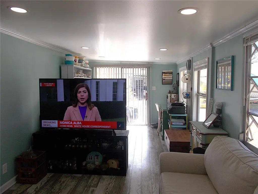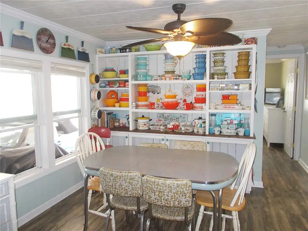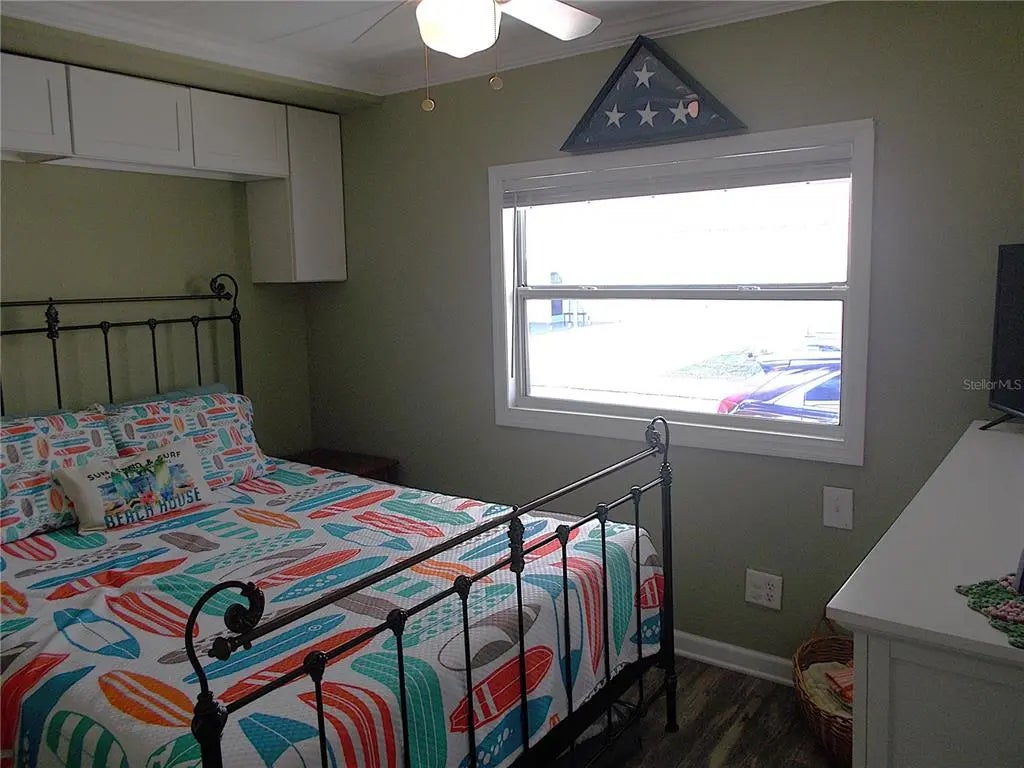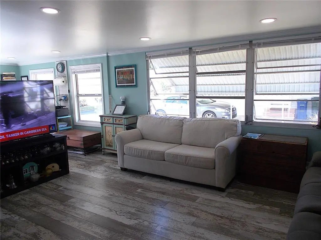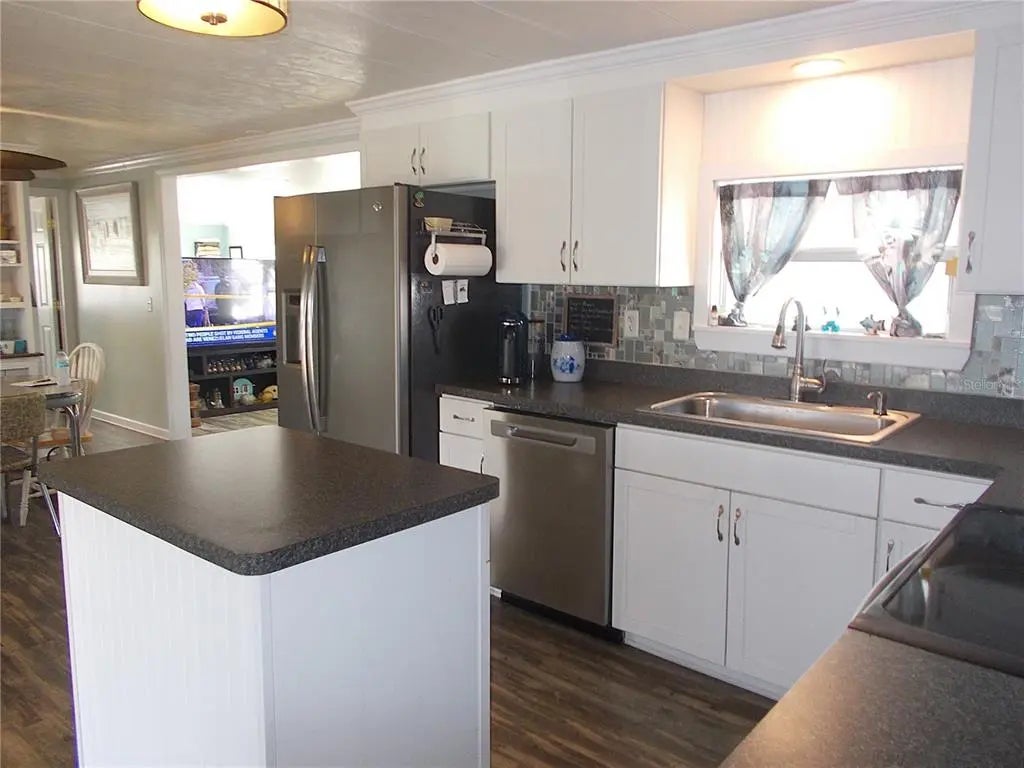 Your "new" beach cottage awaits!! This remarkable 2 bedroom, 2 bath furnished mobile has so many extras and "new", you'll be able to start enjoying your slice of FL paradise immediately! New/newer of mention include, but not limited to: BRAND NEW ROOF (Jan 2026), electric panel, a/c & ductwork, most windows, subfloors and floor coverings, both bathrooms and kitchen, all appliances, crown molding and tile backsplash. Enter through the screened lanai, complete with electric fireplace for those not-so-warm evenings, with ceramic tile flooring. Enter your living quarters through the sliding glass door into your remodeled kitchen with stainless appliances (including a dishwasher) and an island which is open to the dining area with built-in display cabinetry. The enormous 26x10 living room allows plenty of room for entertaining and perhaps an office or hobby area. This popular split-bedroom floor plan allows privacy with bedrooms at either end of the mobile and full baths adjacent to both bedrooms. The primary bathroom is completely remodeled with dual sinks and has a fully tiled walk-in shower, while the guest bathroom is also completely remodeled with a shower/tub combo. You don't have to walk outside to do your laundry here! The large laundry room with full size washer and dryer also has numerous shelves for storage and an additional refrigerator! Needing more storage space? We got you! You'll find 2 more large sheds - one found off of the laundry room and another at the back of the home. Relax out on the private paver brick patio after showering off at your outside "surfboard" shower after a day at one of the nearby gorgeous beaches. Sandalwood Park is renowned for it's low quarterly fees, large lot sizes, being pet friendly, fabulous location and numerous activities. Don't miss out on this fantastic opportunity to become one of Sandalwood Park's newest residents! Make your appointment to see this very well appointed mobile today!