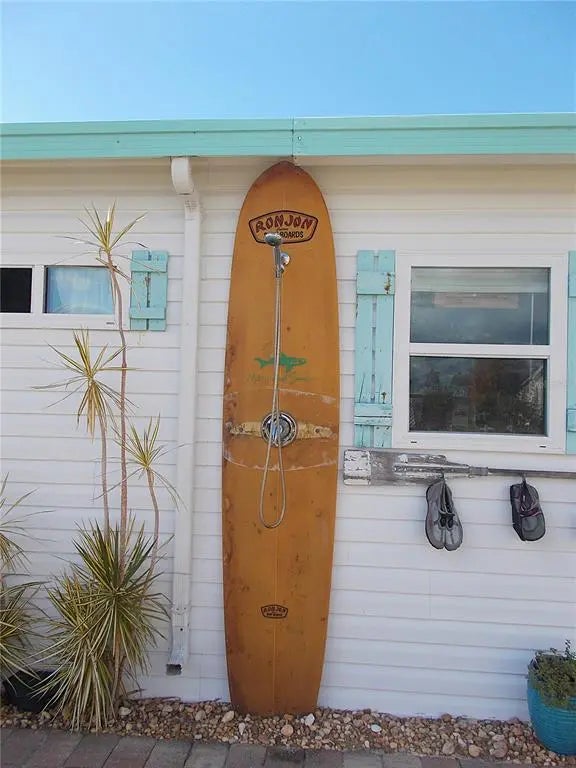 - Exterior FeaturesLighting, Outdoor Shower, Rain Barrel/Cistern(s), Rain Gutters, Sliding Doors, Storage