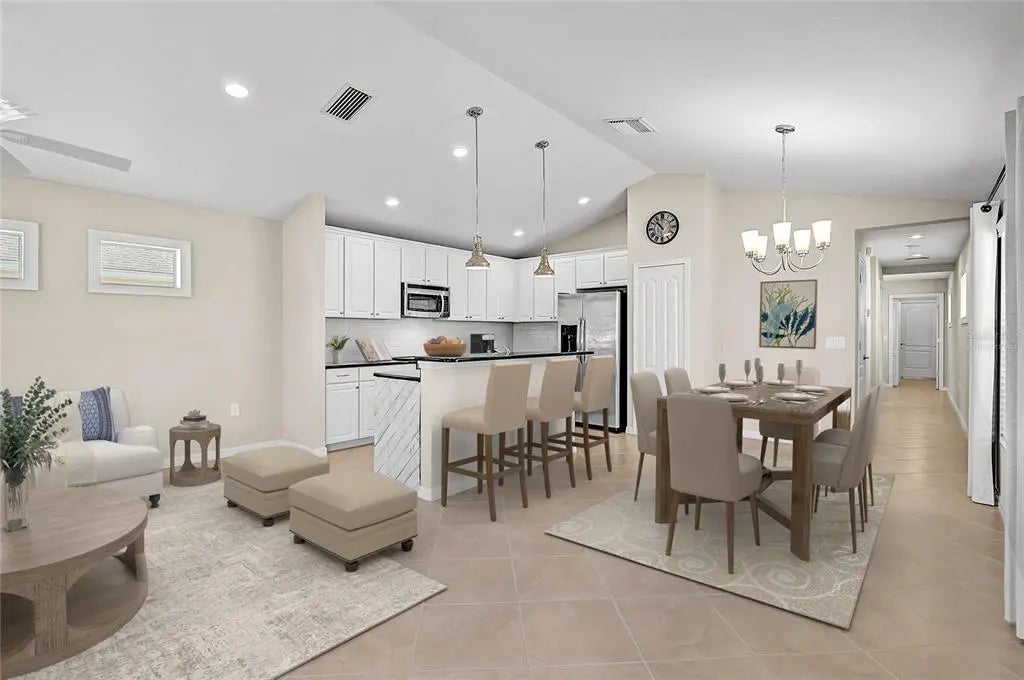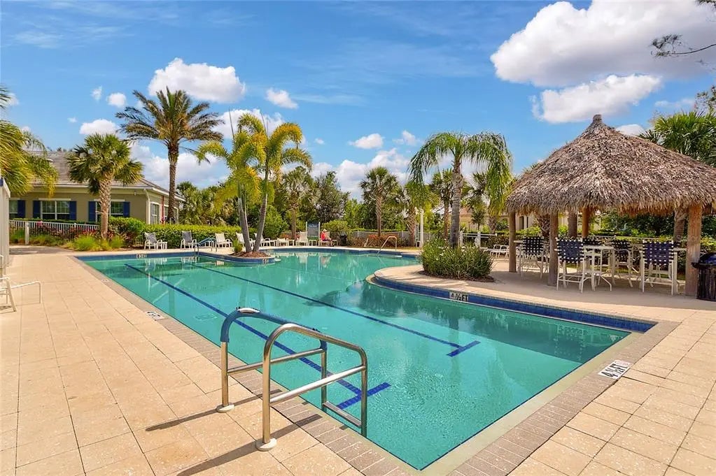 One or more photo(s) has been virtually staged. Tucked into the heart of Grand Palm, this charming 2-bedroom, 2-bath cottage welcomes you with an easy, effortless lifestyle from the moment you arrive. Sunlight pours through oversized front windows, filling the open living space with warmth and creating the perfect backdrop for everyday living or relaxed entertaining. Updated light fixtures and LED lighting throughout the home enhance the bright, airy feel while adding modern style and energy efficiency. The living room flows seamlessly into the kitchen and dining area which creates an inviting layout designed for connection, comfort, and simplicity. The kitchen is both stylish and functional, featuring a center island, granite countertops, refinished cabinetry, and plenty of workspace for casual meals or quiet mornings at home. The primary suite offers a peaceful retreat with a walk-in closet and an ensuite bath complete with a walk-in shower, while the second bedroom provides privacy for guests or a home office. Designed with ease in mind, this one-level home is ideal for those seeking low-maintenance living, making it perfect for a single homeowner, a retired couple, or anyone ready to simplify without sacrificing quality. Thoughtful upgrades add peace of mind, including a new HVAC system, new water heater, new washer and dryer, refinished cabinetry throughout, a freshly epoxied garage floor, and hurricane shutters for easy storm preparation. Meticulously maintained and truly move-in ready, this home shines both inside and out. Beyond the front door, Grand Palm offers a resort-inspired lifestyle surrounded by nature. Start your mornings on miles of scenic walking and biking trails winding through lakes and preserves, spend afternoons by the lagoon-style pools or enjoying pickleball and bocce, and wind down with neighbors at community events, food truck nights, and holiday gatherings. With a fitness center, dog parks, social clubs, and year-round activities, it’s easy to feel connected here yet peaceful enough to feel like a getaway. Just minutes from downtown Wellen Park, shopping, dining, and Gulf Coast beaches, this home delivers the perfect blend of comfort, community, and convenience. Welcome home to Grand Palm, where life feels lighter, slower, and just a little more joyful. ¤ Please see 3D Tour and Video ¤