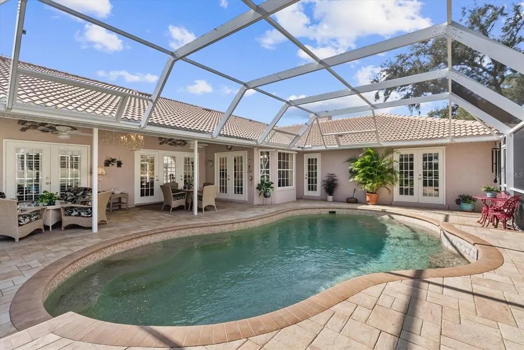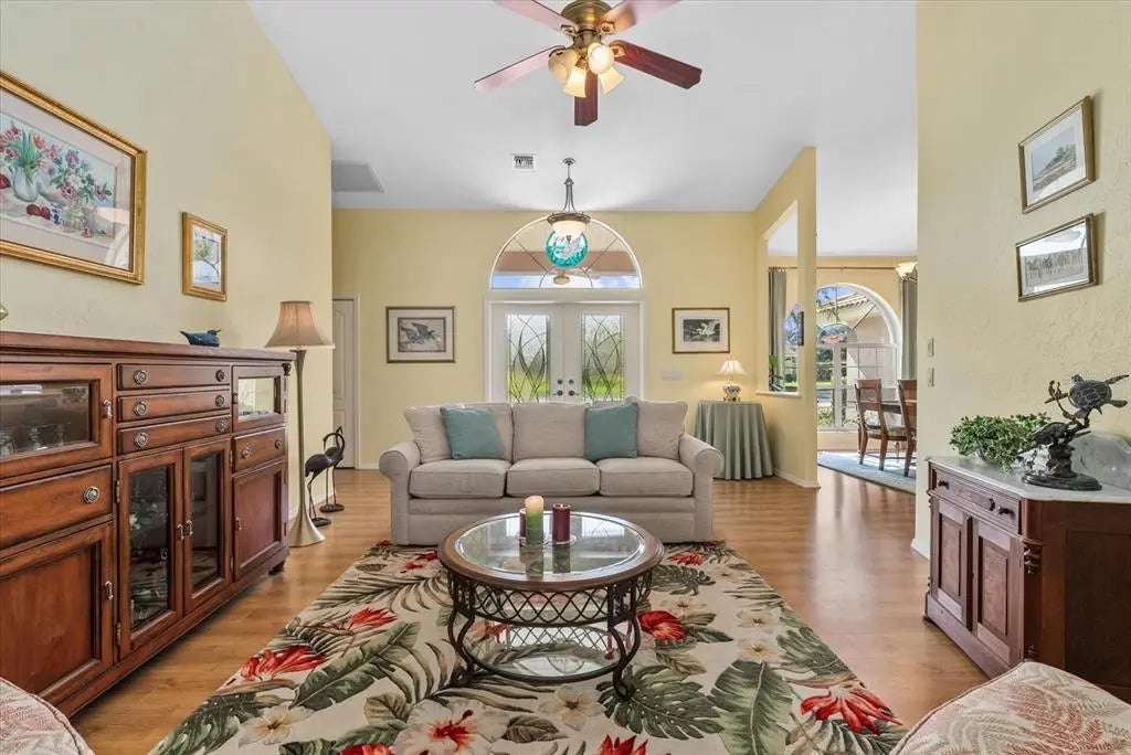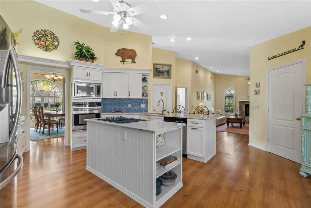 Under contract-accepting backup offers. Set behind the gates of the prestigious Waterford community, this home offers refined Florida living on a premium golf course and lakefront lot with sweeping, uninterrupted views. This expansive 4-bedroom, 2.5-bath residence spans 2,703 square feet and showcases a thoughtfully designed split floor plan enhanced by high ceilings, elegant formal living and dining areas, and abundant natural light. At the heart of the home, a welcoming family room with wood fireplace creates a warm gathering space, complemented by laminate flooring throughout the main living areas. The gourmet eat-in kitchen is designed for both function and style, featuring quartz countertops, a cooking island, JennAir and stainless steel appliances, cooktop with downdraft ventilation, a walk-in pantry, and a charming bay window overlooking the grounds. French doors lead to a spacious screened lanai, where a gorgeous heated pool with pebble-tec finish and brick pavers provide an ideal setting for outdoor relaxation and entertaining, all framed by picturesque golf course and lake views. The exterior living space includes a large covered area, creating a seamless indoor-outdoor flow. The oversized primary suite serves as a private retreat, offering dual vanities, granite countertops, a garden tub, and a separate shower. Guest accommodations are well appointed, with an updated bathroom, dual sinks, and comfortable carpeted bedrooms. A convenient half bath off the kitchen adds functionality, while the laundry and hobby room features built-in storage for added versatility. Additional highlights include hurricane protection with clear shutters, impact-rated door, and window film, a new water heater, and a roof replaced in 2014. A 2-car garage and welcoming tiled front entrance complete the residence. Updated, meticulously maintained, and ideally located within one of Venice’s most desirable gated communities, this exceptional home combines privacy, scenic beauty, and timeless comfort for an elevated Florida lifestyle. Schedule your private showing today!
