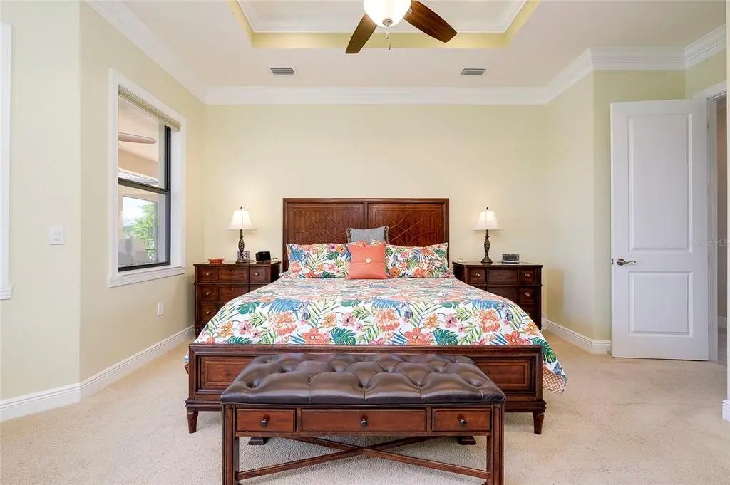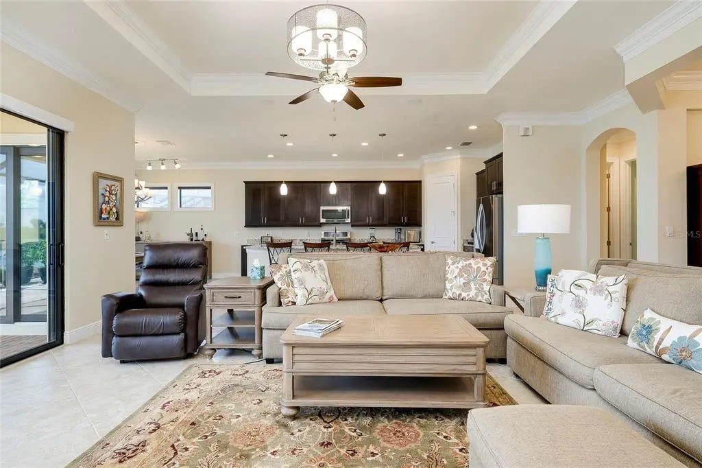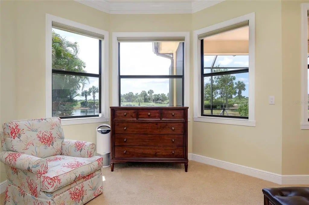 PRICE IMPROVEMENT! WELCOME HOME to your very own Private Paradise! This STUNNING GOLF ESTATE HOME is located in the highly desirable, guard-gated community of SARASOTA NATIONAL in Historic Venice, Florida!! This exceptional & Original WCI built home offers the finest in Florida indoor & outdoor living and is perfectly designed to be versatile for casual or formal entertaining and also includes a Golf Membership for two (2). This meticulously maintained Muirfield Model features 3 Bedrooms plus a large Bonus Room/Den/Study/Office, 3 Bathrooms, 3 Car, side-loaded, insulated Garage and Attic with plenty of storage space, whole-house insulated for sound-proofing, in-wall pest control as well as a central vacuuming system. From the Pavered Driveway, walk through the covered, screened entryway & step through the front door into this lovely home. You will be amazed at the expansive & open view of the Great Room, volume ceilings, surround sound & Porcelain flooring. Looking to your right is a separate Dining Room that offers a private area to entertain guests. Just ahead is the beautiful Chef's Gourmet Kitchen with upgraded, Stainless Steel appliances, Convection Microwave, Induction Range, French Door Refrigerator, Granite Countertops, oversized Bar/Island with Sink, Dishwasher & cabinets on one side and plenty of seating on the opposite side; solid wood Cabinetry with slide-out, soft close drawers & walk-in Pantry. Just to the side of the Kitchen there is an extra roomy, Dining area with a large Slider that opens on to the Lanai. This quality built home exceeds all expectations including stacking, pocket sliding glass doors across the entire back that opens onto the extended, pavered Lanai with wired speakers, plumbed for an Outdoor Kitchen and Spectacular Lake & Golf Course views; the perfect spot to enjoy your morning coffee or entertain friends in the evening for cocktails!! Split Bedrooms with the generous sized Owner's Suite ideally located for privacy with massive Walk-in Closet, Linen Closet, en-suite Bathroom with dual Vanities & Walk-in Shower. The Family & Guest accommodations are warm & welcoming; the second Bedroom also featuring an en-suite Bathroom/combo tub & shower and another large Bonus Room with gorgeous French Doors which is currently being used as an Office. On the other side of the home is the third Bedroom with an adjacent Bathroom/shower. The Laundry room is in a convenient location near the front of the home with a sink & lots of additional wood cabinetry for storage. 10 foot volume ceilings, Surround Sound, Porcelain flooring. High Impact glass, Shaded windows throughout which finishes out this exquisite home in the fantastic, amenity-rich community that includes an 18-hole championship Golf Course, Clubhouse with Bar & Dining facilities, zero-entry heated resort style Pool, outdoor Tiki Bar, Tennis, Bocce & Pickleball courts, Fitness center, Coffee Cafe, Playground, Dog Park & so much more. This incredible Home is just minutes to nearby Beaches, Atlanta Braves Spring Training Stadium, Wellen Park's downtown center as well as Historic Downtown Venice. Furniture Optional! This is a MUST SEE; Schedule an Appt. and SHOW Today!! Owner Motivated!