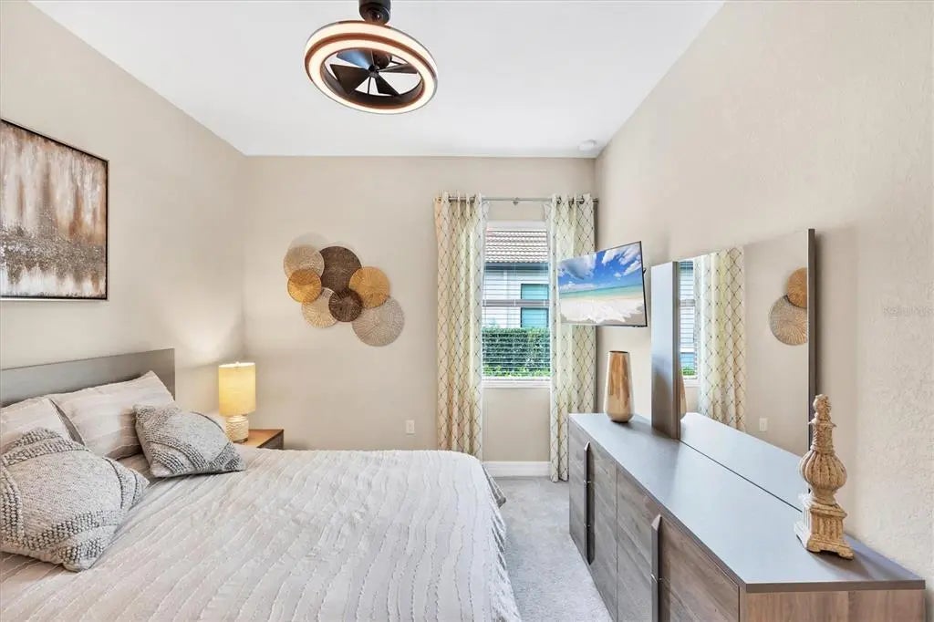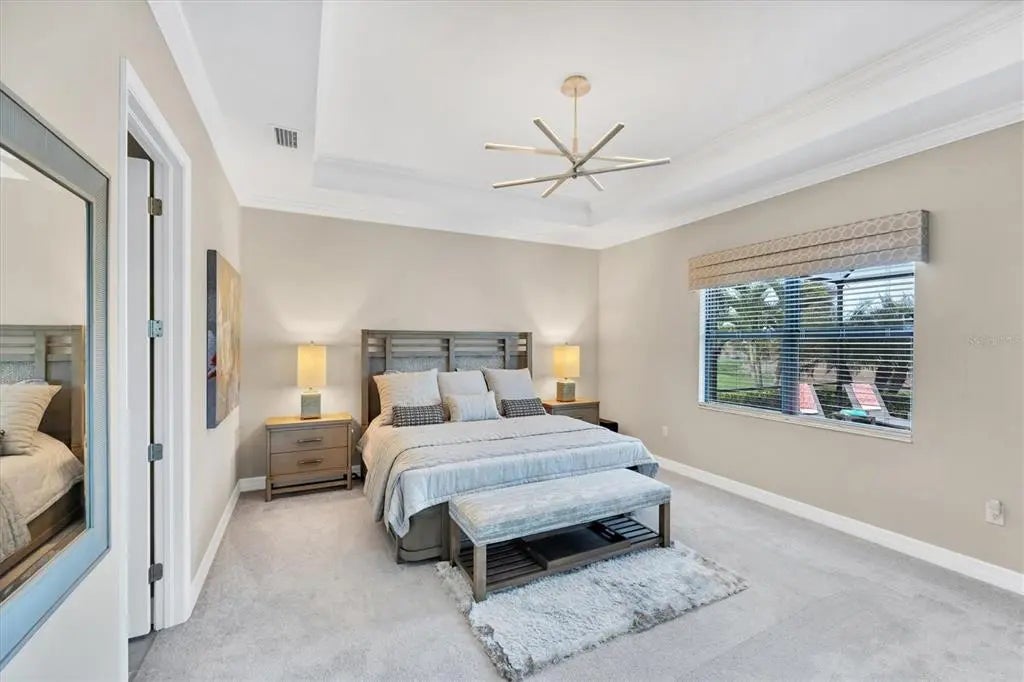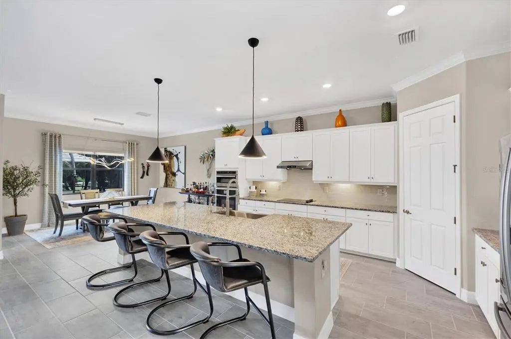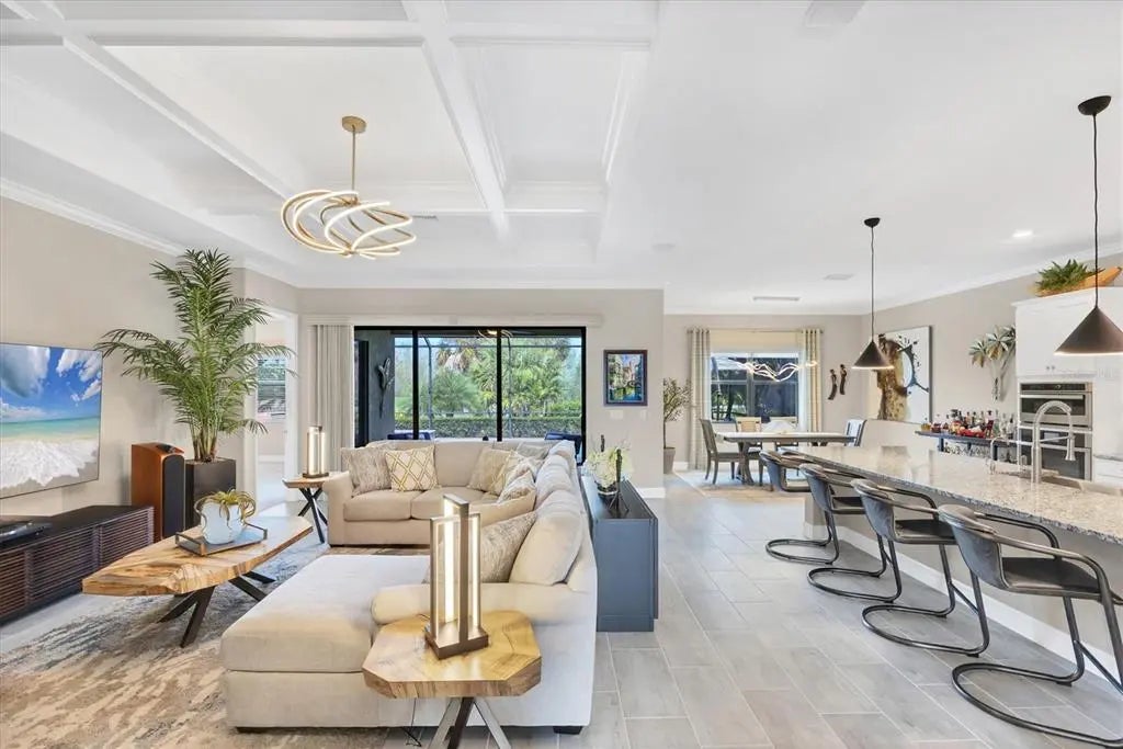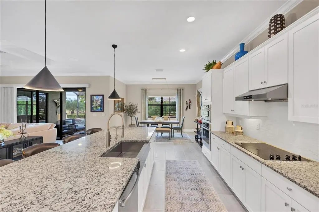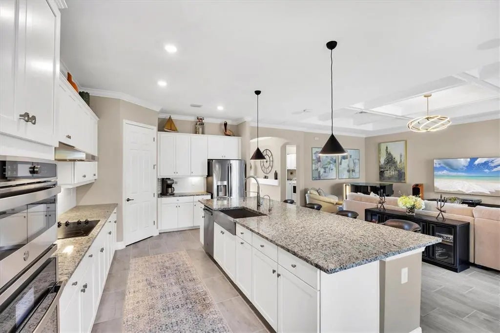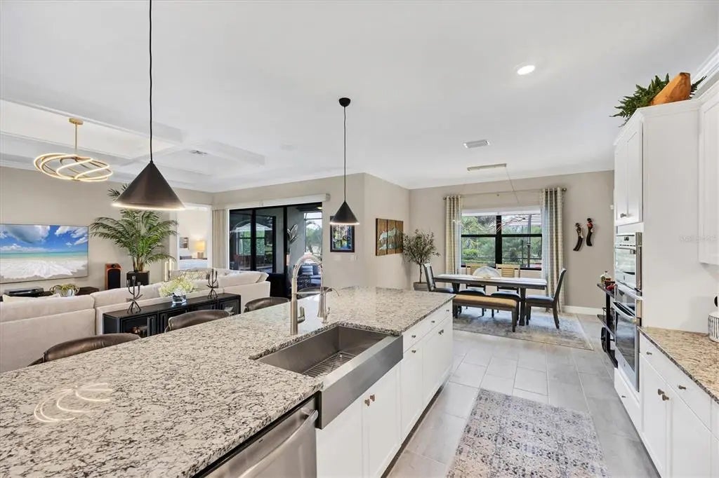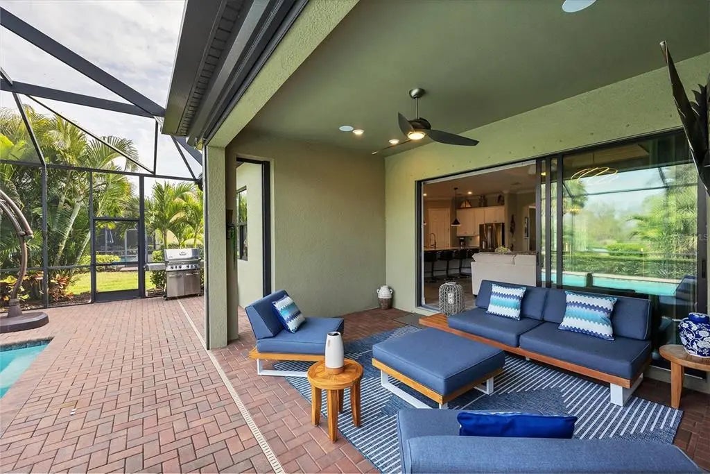 Welcome to this STUNNING home in the highly sought after SARASOTA NATIONAL GOLF AND COUNTRY CLUB! Come live in this VIBRANT community by letting yourself indulge in the most popular floor plan on the most coveted street in the neighborhood. Sitting at the end of this cul de sac street, this Summerville is sure to please w/tons of upgrades. Offering 3BD/3BA/DEN & 3 CAR GARAGE. TWO GOLF MEMBERSHIPS COME WITH THIS HOME, NO INITIATION FEE REQUIRED. When you drive up to the home curb appeal is off the charts w/ pavered drive/sidewalk, upgraded brick front, & leaded glass double doors all surrounded by beautifully designed tropical landscaping. Upon entering the home you will notice the rectangle plank PORCELAIN TILE flooring that runs throughout the main areas of the home. Walk through the foyer & come to the heart of the home-the GREAT ROOM, which brings living area, kitchen,& dining together in a functionally elegant combination. Gourmet Kitchen has GRANITE countertops, STAINLESS STEEL APPLIANCES (upgraded oven/microwave convection oven),extra large stainless steel FARMERS SINK, & easy pot fill HANSGROHE faucet. PENDANT LIGHTS, EXTRA RECESSED LIGHTS, & UNDER CABINET LIGHTING, makes sure the Chef doesn't miss a beat. KINETICO H2O double water filtration system & Revers Osmosis for drinking water. Crown molding, high end lighting & fixtures throughout home. Expansive Living room has gracious coffered ceiling design,& sliding doors out to the VERY PRIVATE,VERY SPACIOUS lanai & HEATED PRIVATE POOL/SPA. Lots of different areas to enjoy-float in the pool, soak in the hot tub, lounge in the sun, sit undercover rain or shine & enjoy the tropical landscaping all around the lanai creating your own private oasis. STORM SMART, REMOTE CONTROL HURRICANE SCREEN for lanai. Furniture can all be left undercover and protected. Master bedroom w/tray ceiling, sliders to lanai & has en suite bathroom that is a dream. Two separate vanities for individual space & a wondrous double shower that will elevate your senses. LARGE WALK IN CUSTOM DESIGNED CLOSETS. Guest bedroom 1 has en suite bathroom while guest bedroom 2 has its own private space and bathroom right next door. Laundry room offers wash sink & extra cabinets. 3 CAR GARAGE has lots of room for cars and storage. Two heavy duty storage racks to keep things off the floor. EV PLUG in garage(charger ready). HAVE YOU SEEN THE PROPERTY AT NIGHT? Additional landscape lighting in front, back, & on lanai. Improved irrigation system with Hunter remote control for programmed scheduling. Added additional sprinkler heads in front and back. No expense was spared on this GORGEOUS home so MAKE YOUR APPOINTMENT TO SEE IT TODAY!! Sarasota National is a magnificent community w/over 1300 acres designated for preservation, conservation, lakes, & open space with amazing views, Proclaimed as an Audubon International Certified Sanctuary, making it the most gorgeous and enjoyable golf course to play at in the area. Offering resort style amenities w/huge resort style pool/ spa,Tiki Bar to serve refreshing drinks & a bite of lunch, tennis courts, pickle ball, Bocce courts, coffee lounge/library/card room/meeting place, 7000 sq ft fitness facilities offering classes and day spa, & a 30,000 sq ft Clubhouse with dining and spectacular views. 18 Hole championship golf course surrounded by native wetlands and preserves provides an exhilarating and dramatic back drop for your golfing adventure. Come find YOUR Florida lifestyle TODAY!