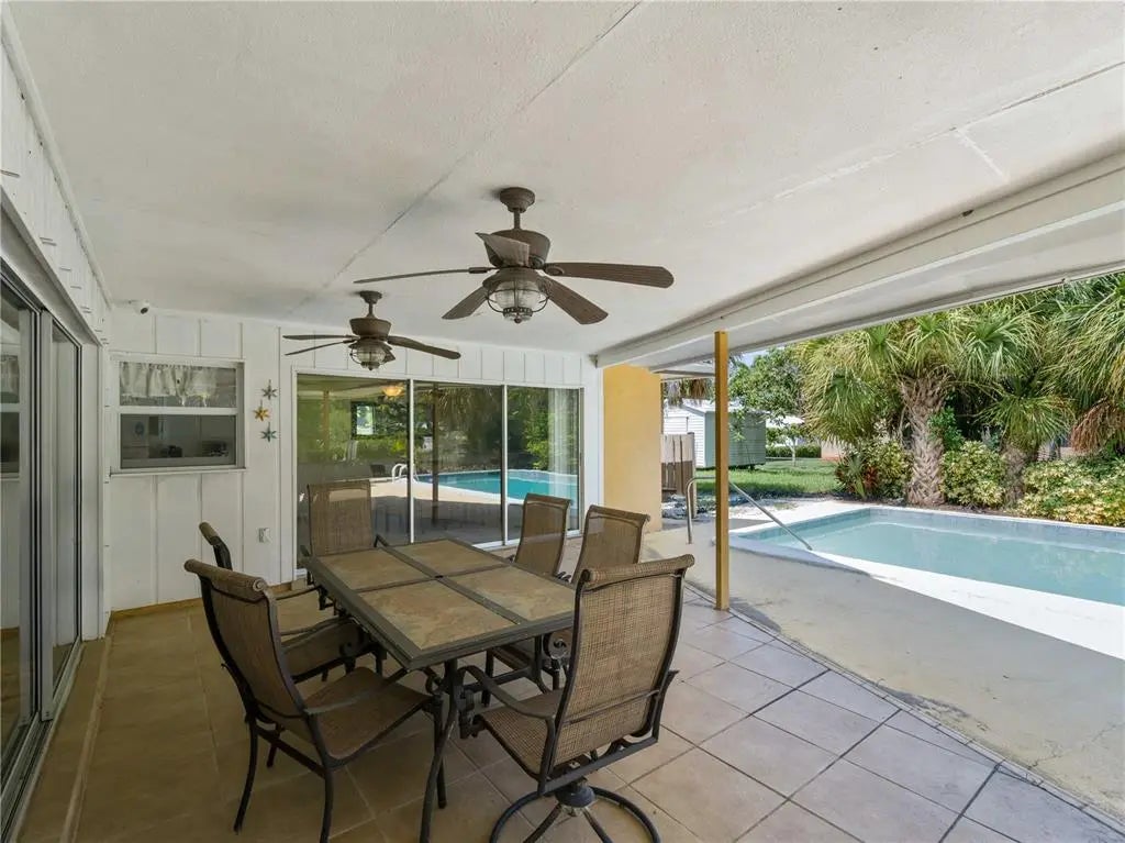 Discover the charm and endless possibilities of this inviting 3-bedroom, 2-bathroom pool home, ideally located just minutes from the breathtaking beaches of the Gulf of Mexico and the vibrant energy of historic downtown Venice. Enjoy easy access to boutique shopping, parks, and an array of exceptional restaurants all while savoring the comfort of coastal living. A newer roof installed just three years ago provides added peace of mind. From the moment you arrive, the welcoming front porch sets the tone for what’s inside. The thoughtfully designed split floor plan offers privacy, while the spacious living room is filled with natural light and opens through sliding glass doors to the pool and backyard, creating a seamless indoor-outdoor flow. The kitchen features a microwave hood, coil stovetop, and a cozy breakfast nook, perfectly positioned for everyday living and entertaining. The spacious primary suite serves as a private retreat with direct pool access, a large walk-in closet, and an en-suite bathroom with a walk-in shower. Two additional guest bedrooms share a well-appointed bathroom, providing comfortable accommodations for family or visitors. Step outside to your private, fenced backyard oasis, complete with a generous pool area, outdoor seating, and a convenient outdoor shower — ideal after a day at the beach. A backyard shed offers additional storage, while the two-car garage provides ample space for parking and organization. Located in one of Florida’s most beloved Gulf Coast communities, Venice is known for its beautiful beaches, welcoming atmosphere, and relaxed coastal lifestyle. From boating and fishing to art festivals and outdoor concerts, this home offers the perfect blend of comfort, functionality, and coastal charm. Ready for you to make it your own.