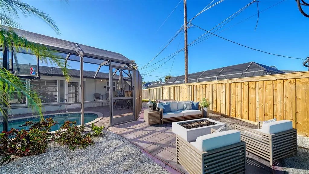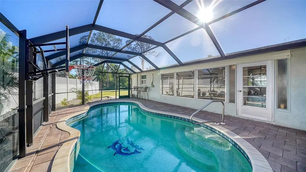 Under contract-accepting backup offers. One or more photo(s) has been virtually staged. Enjoy this 3/2 pool home located on a corner lot across from a bird sanctuary. This home has been extensively updated since initial purchase. Some updates include ceiling fans and lights, impact windows except for in Florida room, total rescreening of front entrance and pool cage, roof replaced in 2016, AC replaced in 2021, removal all popcorn ceilings, entire property repainted, well pump and pressure tank replaced within last 3 years, water softener, new outlets, new bathroom cabinetry and floors, new kitchen cabinets, countertops and flooring and an induction range. This is a split floor plan with the Florida room now incorporated into the living area with a pass through from the beautiful galley kitchen. The bedrooms are all large with large walk in closets. There are 2 updated bathroom with tiled floors, single sinks and new vanities. One bath has a bathtub/shower combo that other has a walk-in shower. The county shows the effective year built date of the property as 1994. The free form heated pool has a playful dolphin design in the bottom and pavers surrounding making a great screened in area for entertaining. As a bonus you also get an additional paved area outside the pool cage for entertaining. Ideally located near end of the road and just minutes from beaches, shopping, dining and downtown historic Venice.