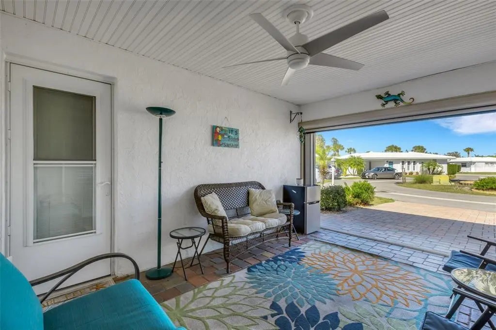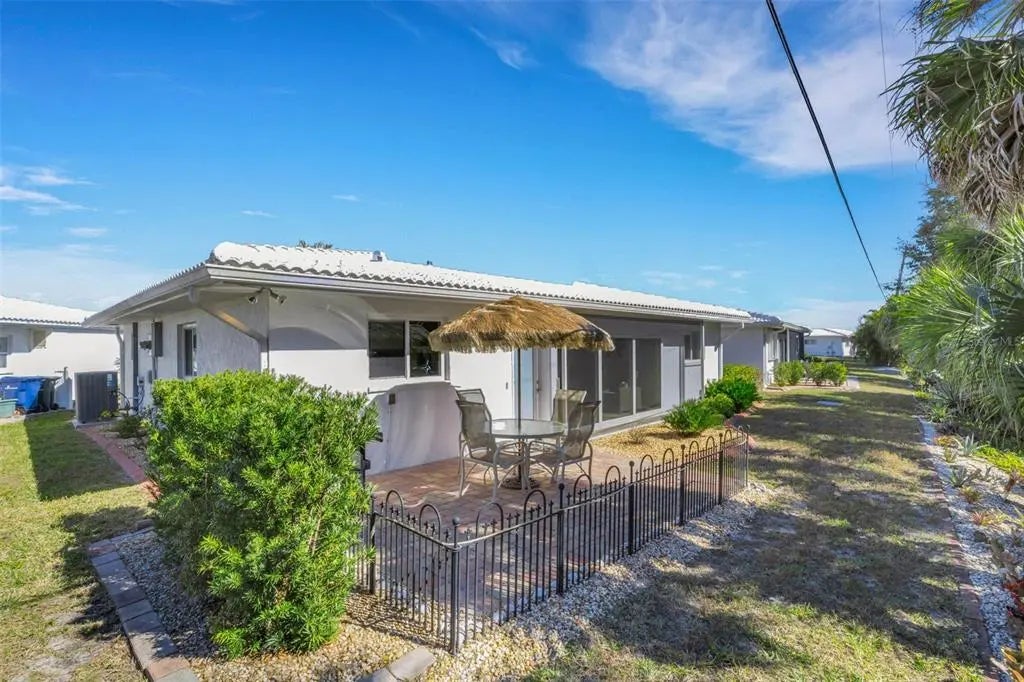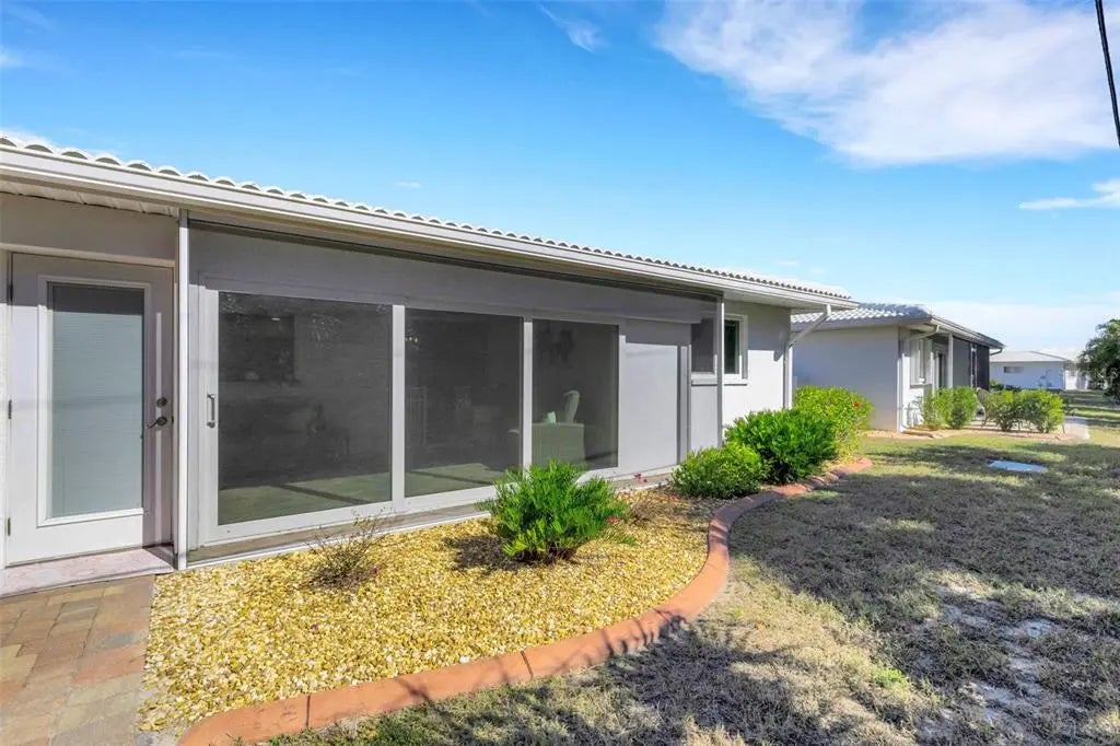 Under contract-accepting backup offers. NEW ROOF ~~ Discover a haven of warmth and camaraderie as you step into this inviting community. Perfectly suited for both snowbirds and year-round residents, Circle Woods Community provides a true sense of belonging. Prepare to be captivated by this updated freshly painted model will many extras, a magnificent TURNKEY, two-bedroom villa with ceramic-tile flooring and tile throughout, plantation shutters in living room and newer water heater. The kitchen has been remodeled with all new appliances - dishwasher, stove, microwave, refrigerator, cupboards, water filtration system and countertop. The hurricane windows, doors and slider add a sense of security. The carport can be enclosed with a screen shutter to privacy and protection. The driveway is updated with tasteful pavers. This standalone gem boasts a comfortable floor plan, offering ample room to unwind and create lasting memories. The enclosed lanai creates an open and airy ambiance with a magnificent view of open-green space. Enjoy your private patio and the efficient laundry room is conveniently positioned within the villa, adding ease to your daily routines. Circle Woods is a maintenance-free, no-age restrictions community offering two pools, a fitness room, shuffleboard, horseshoes and boccie. Circle Woods is located close to Manasota Key and Venice Beaches, shopping, Atlanta Braves training facility and many of the wonderful outdoor activities in the Venice area. This villa is move-in ready. Must own for two years before leasing, only 1 pet (medium). Monthly condo fee $420 and Board approval ($100 application fee, non-refundable). The Community Offers: Free Lawn Maintenance, Clubhouse, Game Room, Gym, Library, 2 Heated Pools, Spa, Sauna. Must see this outstanding villa in Circle Woods.