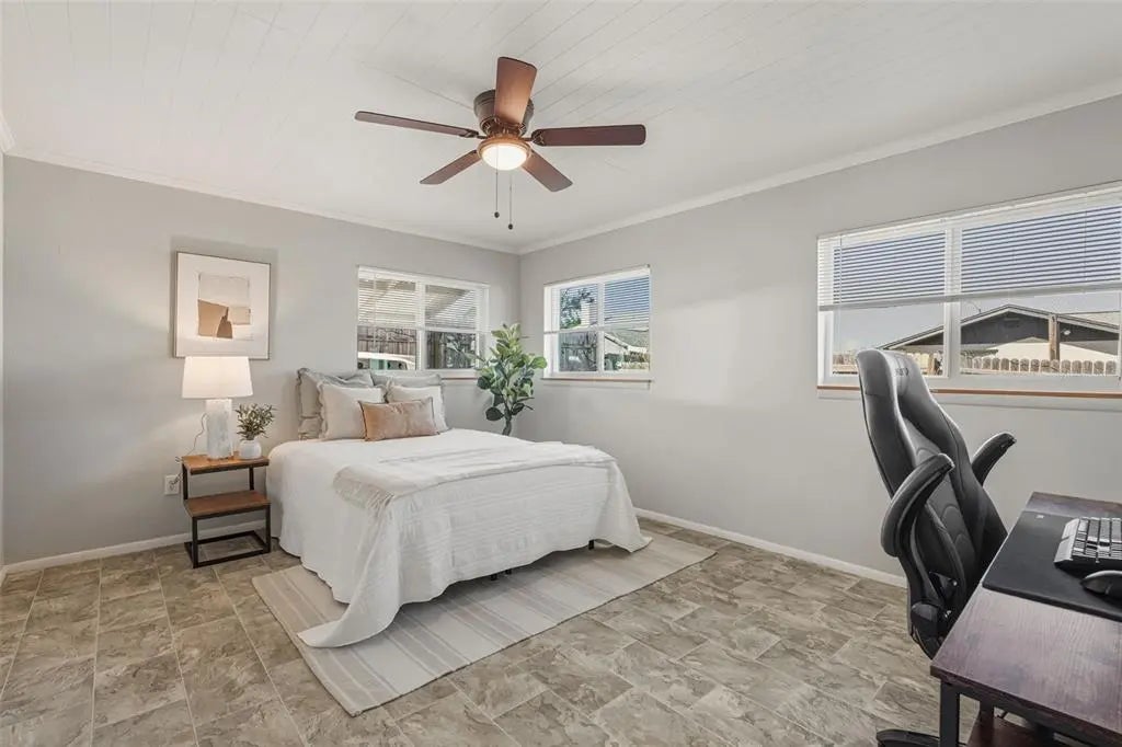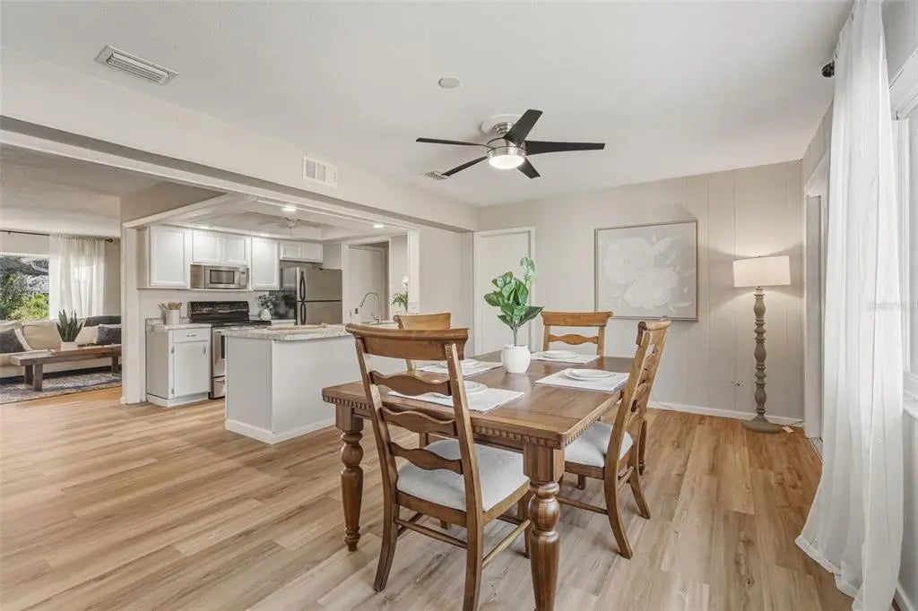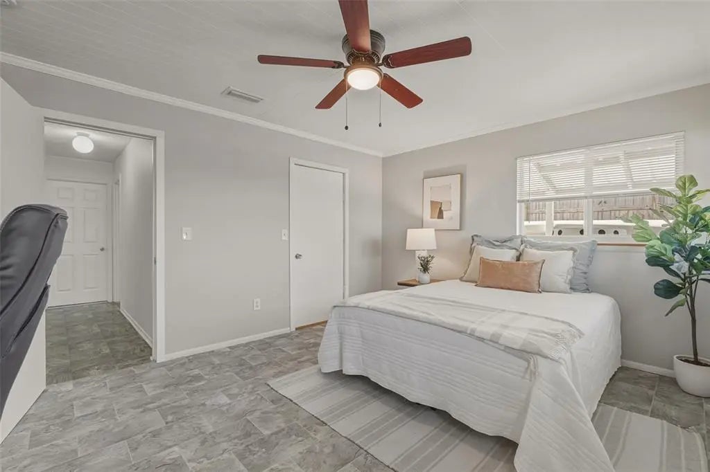 This ADORABLE 3-bedroom, 2-bathroom South Venice home has been meticulously maintained and tastefully updated! NEW ROOF in 2023! NEW HURRICANE RATED WINDOWS, DOORS & GARAGE DOOR installed in 2023 & 2024! AC was installed in 2020. Brand new luxury laminate floors throughout the living room, dining room and kitchen! The sprawling living room, abundant natural light, and the open kitchen create an inviting atmosphere- perfect for entertaining your guests. The kitchen has stainless appliances, breakfast bar and TWO CLOSET PANTRIES! To the right, past the living room room is the private primary suite with GORGEOUS renovated bathroom and HUGE walk-in closet. To the right of the dining room you’ll find a spacious bedroom (no closet.) To the left of the dining room is the 2nd bedroom with a walk-in closet. The door in the dining room leads to your private backyard. There is a guest bathroom past the kitchen and the entrance to the 1 car garage is just past the bathroom. This home is on a QUIET STREET and it is NOT IN A FLOOD ZONE. There are NO CDD FEES & NO MANDATORY HOA FEES! This home is not in a deed restricted community so bring your RV, boat, and pets! When you buy a home in this neighborhood, there is an optional association you can join for a nominal fee. This membership grants you access to a 1300 foot private beach, boat ramp, kayak/canoe launch, and ferry access to the beach! See https://southvenicebeach.org for more information. Shamrock Park is also nearby with pickleball, tennis, basketball, playground, scenic nature trails, outdoor gathering pavilion, & entry to the Legacy Trail! The quaint historic district of Venice is also nearby and is known for its shopping, dining, Venice Little Theater, Venice Beach, splash pad, parks, playgrounds, fishing pier, tennis courts, weekly farmer’s market, tons of events, and so much more! Schedule your showing today and start living the Florida lifestyle!