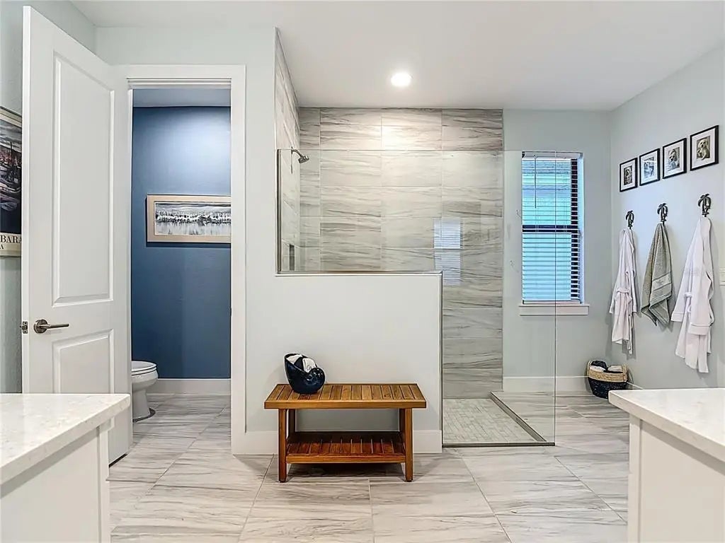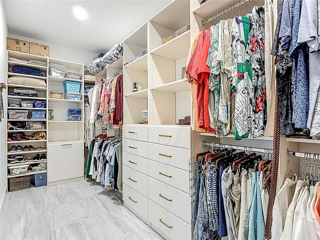 - Interior FeaturesCeiling Fan(s), Eating Space In Kitchen, High Ceilings, In Wall Pest System, Open Floorplan, Primary Bedroom Main Floor, Stone Counters, Tray Ceiling(s), Walk-In Closet(s), Window Treatments