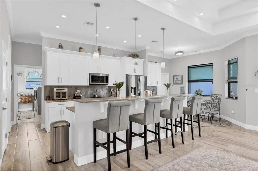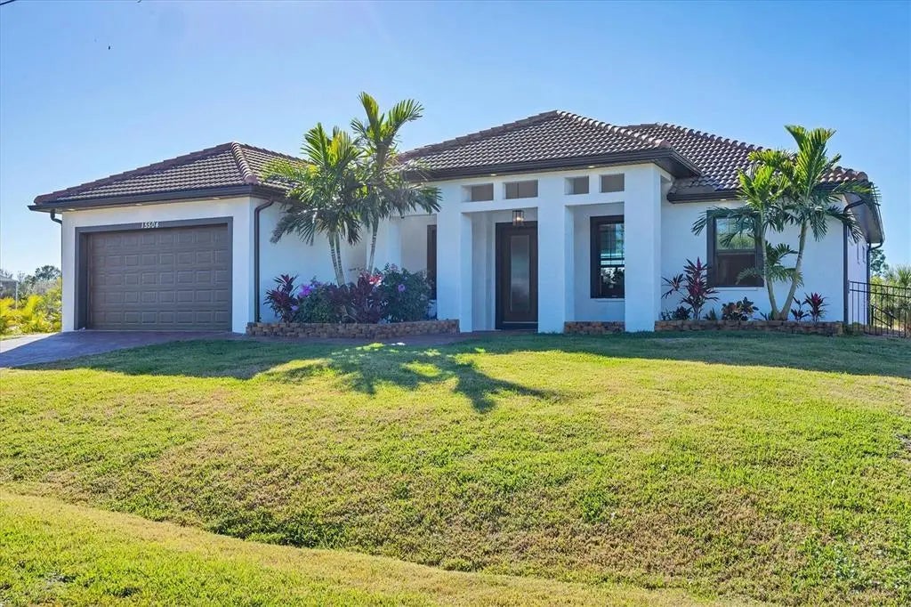 WATERFRONT POOL HOME WITH GULF ACCESS in South Gulf Cove! Welcome to 15504 Hennipen Circle, a custom-built coastal luxury residence offering 2,105 sq ft, 3 bedrooms, 2 baths, and 80 feet of saltwater canal frontage on the Lakeland Waterway. Enjoy optional HOA, no CDD fees, and direct boating access through the lagoon and locks to Charlotte Harbor and the Gulf of Mexico. This thoughtfully designed home features an open, light-filled floorplan with tile flooring throughout, volume, vaulted and coffered ceilings, crown molding, and a desirable kitchen/family room combo. The kitchen is beautifully appointed with granite countertops, soft-close cabinetry, and energy-efficient smart stainless-steel appliances, complemented by a smart thermostat—most systems can be controlled from your phone. Zero-corner sliding glass doors open to the expansive covered and screened lanai, showcasing a custom in-ground gunite pool with sun shelf and umbrella sleeve, perfect for entertaining or relaxing while enjoying peaceful canal views. There is ample room to add a private dock, with fishing right outside your back door and quick boating access to Fisherman’s Village and open water. Energy efficiency and storm protection are priorities with spray-foam attic insulation and hurricane-rated, Low-E impact windows and doors—no shutters required. The two-car garage offers additional storage space and features an easy-to-clean epoxy floor. Ideally located close to Gulf beaches, Boca Grande, shopping, dining, golf, Warm Mineral Springs, world-class fishing, spring training stadiums for the Rays and Braves, and a nearby water park. Don’t miss this exceptional waterfront opportunity—schedule your private showing today!