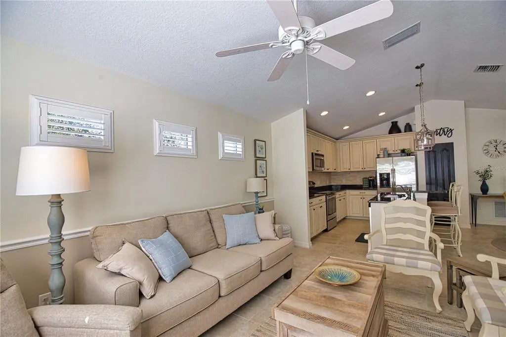 Resort-style living awaits in Venice’s premier gated community, Grand Palm, by award-winning Neal Communities. Amenities abound, with a full-time activities director offering something for everyone: pickleball, bocce, tennis, basketball, volleyball, water aerobics, three gorgeous pools, card games, book clubs, cooking clubs, and countless opportunities to meet new friends. For those seeking serenity, enjoy miles of walking paths winding through lush tropical landscaping, scenic lakes, and abundant wildlife. The community is just minutes from bustling downtown Wellen Park, the Atlanta Braves’ spring training stadium, historic downtown Venice, and top-rated golf beaches. This standalone, maintenance-assisted ranch home is situated on a premium corner lot overlooking Exploration Park and is conveniently located just steps from the recently updated fitness center and the community’s main gathering areas. Inside, the meticulously maintained one-story, open-concept home features numerous upgrades, including a shiplap feature wall, plantation shutters, luxury vinyl plank flooring, front and rear screened doors that allow refreshing Gulf breezes to flow through the home, chair rail, crown molding, and more. The buyer has the option to purchase this tastefully decorated home turnkey. This Rose 2 Cottage, one of approximately 140 cottages within a community of roughly 1,800 homes, was designed for affordability while being surrounded by significantly higher-valued homes, making it an exceptional investment opportunity. Whether you are a full-time Floridian, a seasonal resident, or an investor, this is your opportunity to own a slice of paradise.