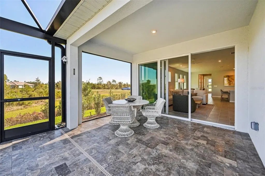 Elegant, resort-style living awaits in Brightmore at Wellen Park, a gated 55+ community where privacy, sophistication, and an active, social lifestyle come together seamlessly. This beautifully designed two-bedroom plus den home with a two-car garage offers a thoughtfully planned open-concept layout, ideal for both everyday comfort and entertaining with style. A light-filled foyer welcomes you into the home, featuring 8-foot doors, impact glass throughout, and timeless porcelain tile flooring flowing effortlessly through the main living areas. Just off the foyer, the den with double glass doors provides a versatile space—perfect as a home office, reading retreat, media room, or hobby room—allowing you to customize the home to your lifestyle. The bright kitchen is both functional and stunning, showcasing quartz countertops, crisp white wood cabinetry with soft-closing doors and pull-out drawers, a tile backsplash, premium appliances, a spacious walk-in pantry, and an oversized island with ample seating—ideal for casual meals. The kitchen flows seamlessly into the expansive great room and dining area, creating a welcoming and open atmosphere. The primary suite offers a serene retreat, complete with upgraded luxury vinyl flooring, a generous walk-in closet with matching upgraded flooring, and an ensuite bath featuring an oversized walk-in shower. The guest bedroom and closets also feature upgraded luxury vinyl flooring, adding both style and durability. A well-appointed second full bathroom with a walk-in shower, a half bath off the kitchen, and a large laundry room with a raised washer and dryer enhance convenience and comfort throughout the home. Step outside to your private outdoor oasis. The elegant travertine pool deck, paired with a clear-view screen, overlooks a tranquil lake and preserve, providing a serene setting for sunrise coffees, sunset evenings, and poolside relaxation. As an added bonus, the 2-car garage comes with an upgraded epoxy finish. The home’s location offers exceptional privacy while remaining just steps from the community’s amenity center. Brightmore at Wellen Park provides an unparalleled lifestyle with a lakefront clubhouse, resort-style pool and lap pool, pickleball courts, a state-of-the-art fitness center, group fitness studio, dog park, and a café and bar. Residents enjoy a full social calendar featuring events, clubs, classes, and activities that keep every day engaging. The community is perfectly situated near the Atlanta Braves Spring Training Complex with seasonal events. Downtown Wellen Park offers waterfront dining, boutique shopping, live music, farmers markets, walking trails, and vibrant community gatherings. Just a short drive away, Downtown Venice provides charming coastal living with beaches, historic architecture, art galleries, festivals, and acclaimed restaurants. This exceptional residence combines sophisticated design, premium upgrades, and an unmatched lifestyle—offering luxury living at its finest in one of Southwest Florida’s most desirable 55+ communities. Schedule your showing today!