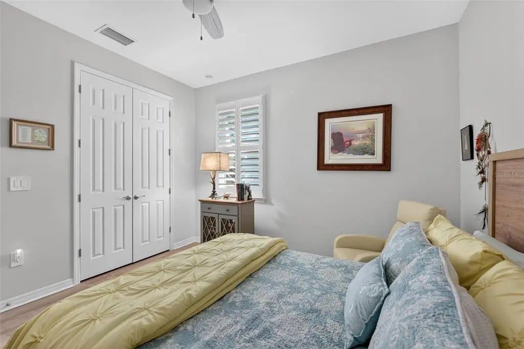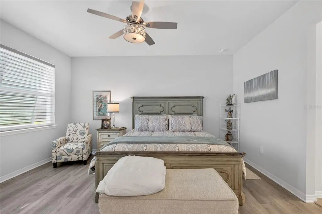 - Interior FeaturesCeiling Fan(s), Eating Space In Kitchen, High Ceilings, Kitchen/Family Room Combo, Living Room/Dining Room Combo, Open Floorplan, Primary Bedroom Main Floor, Split Bedroom, Stone Counters, Walk-In Closet(s)