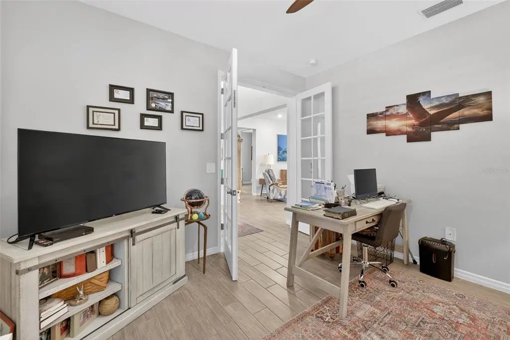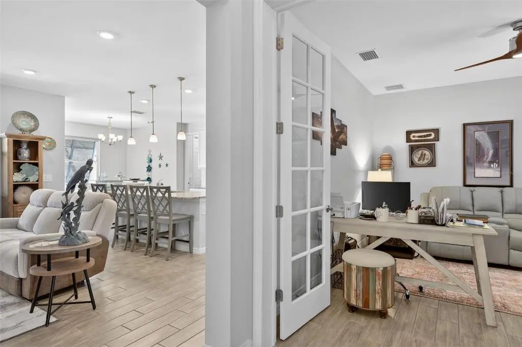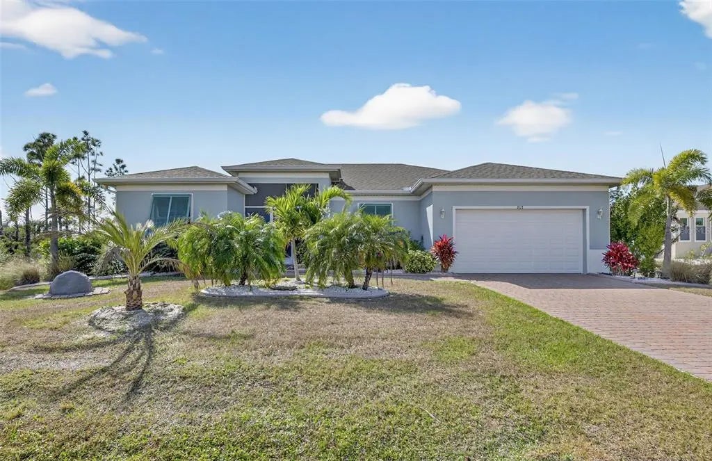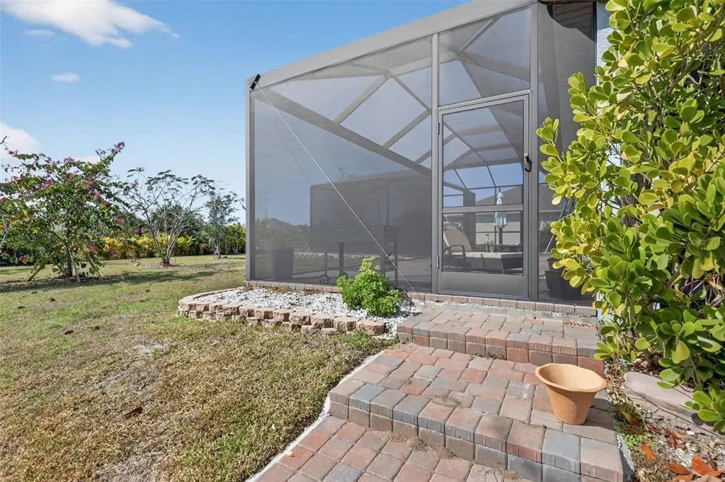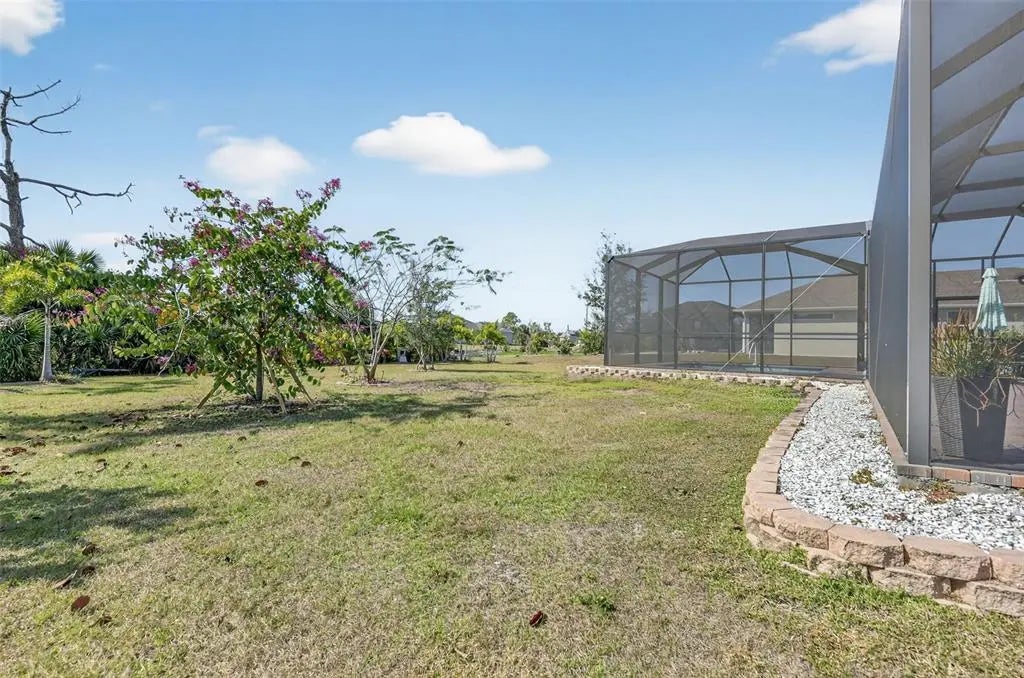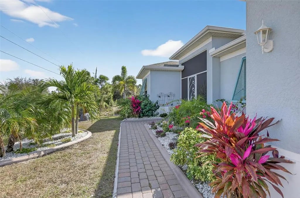 Like new and impeccably maintained, this stunning pool home shows like a model and is priced to sell. ASSUMABLE VA LOAN WITH 2.5 INTEREST RATE! Offering three generous bedrooms plus a versatile den with double glass doors. This space easily adapts as a home office, playroom, or media room. The heart of the home features an open-concept layout where the kitchen, dining, and living areas flow seamlessly. It is perfect for both everyday living and entertaining. The kitchen shines with granite countertops, a classic subway tile backsplash, stainless steel appliances including a touch-screen refrigerator, a large pantry, and abundant cabinetry. A spacious island with stylish pendant lighting provides ample prep space and casual seating for gatherings. The thoughtfully designed split floor plan ensures privacy, with the primary suite tucked away on one side of the home. This serene retreat boasts two large walk-in closets and a spa-like ensuite bath complete with dual vanities and a walk-in shower. Guest bedrooms are comfortably situated on the opposite side of the home. Step outside to your private outdoor oasis. The expansive lanai features a saltwater swimming pool with a Pebbletec finish and an above-ground seven-person hot tub, ideal for relaxing or entertaining year-round. Situated on an oversized lot of over one-third of an acre, there’s plenty of space to enjoy outdoor activities and Florida living at its finest. Notable upgrades include impact windows with Bahama shutters, epoxy garage flooring, a screened front entry, lush tropical landscaping, and elegant brick pavers on both the driveway and lanai. Best of all, there are no HOA fees, and the current owner’s affordable flood insurance policy is transferable to the new owner. Located in the desirable South Gulf Cove community of Port Charlotte, this home offers a peaceful, rural feel surrounded by natural beauty, yet remains just minutes from shopping, medical facilities, and the pristine beaches of Boca Grande and Englewood Beach. Enjoy nearby golf courses, miles of biking trails, and world-class fishing. An optional HOA provides access to a clubhouse, park, playground, and private boat ramp. This exceptional home delivers comfort, style, and the ultimate Florida lifestyle, don’t miss the opportunity to make it yours.