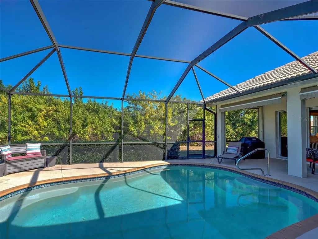 Under contract-accepting backup offers. Wow!!! POOL home with BRAND NEW TILE ROOF (being installed March 2026 at seller's expense) for only $549,000! Hurry to tour this stunning home, priced to sell, which could be your fabulous home in the sought after Sawgrass community, an active, gated, golfing (optional) community in Venice FL! This custom-built home has it all: 3 generously sized bedrooms, 2 bathrooms, a 2-car garage and over 2,000 feet of luxurious living space and is a true masterpiece. Providing both comfort and style in a peaceful, private setting, this meticulously maintained home's recent upgrades include a new tile roof with transferable warranty, full home HURRICANE PROTECTION (easy to operate accordion shutters), newer AC (2021), and fresh interior paint. Step inside to a bright and inviting open floor with beautiful architectural details, soaring 12 ceilings, luxury vinyl plank floors, plantation shutters and elegant crown molding. Unwind and enjoy the wonderful Florida weather on the tranquil lanai with lush landscaping, enjoying a beautiful sunset or floating in your saltwater pool- your own oasis. The gourmet kitchen opens to the family room, making entertaining so easy and features granite countertops, solid wood cabinets, undercabinet lighting, pantry and breakfast bar. The sunny breakfast area is perfect for a casual meal and the formal dining room is ideal a special occasion. The spacious primary suite, a haven of tranquility, offers 2 closets (one a walk-in), doors to the lanai and an ensuite bathroom with dual sinks, garden tub, walk-in shower and separate water closet for privacy. Guests will feel right at home thanks to the split floor plan, roomy additional 2 bedrooms and 2nd full bathroom. On a practical note: home is NOT IN A FLOOD ZONE, water heater is new (2025), the lanai has newer screens and stainless-steel hardware, garage has epoxy floors and a hurricane rated garage door. Sawgrass offers a vibrant lifestyle with fabulous amenities, including a resort style community pool, fitness center, active clubhouse and pickleball courts with low HOA fees and no CDD fee. Ideally located - just 4 miles from Venice Island’s beaches, dining, and cultural offerings, this home is also conveniently close to Sarasota Memorial Hospital, I-75, and the expanding Wellen Park community. Don’t miss this rare opportunity for luxury, location, and lifestyle - this spectacular home truly has it all!
