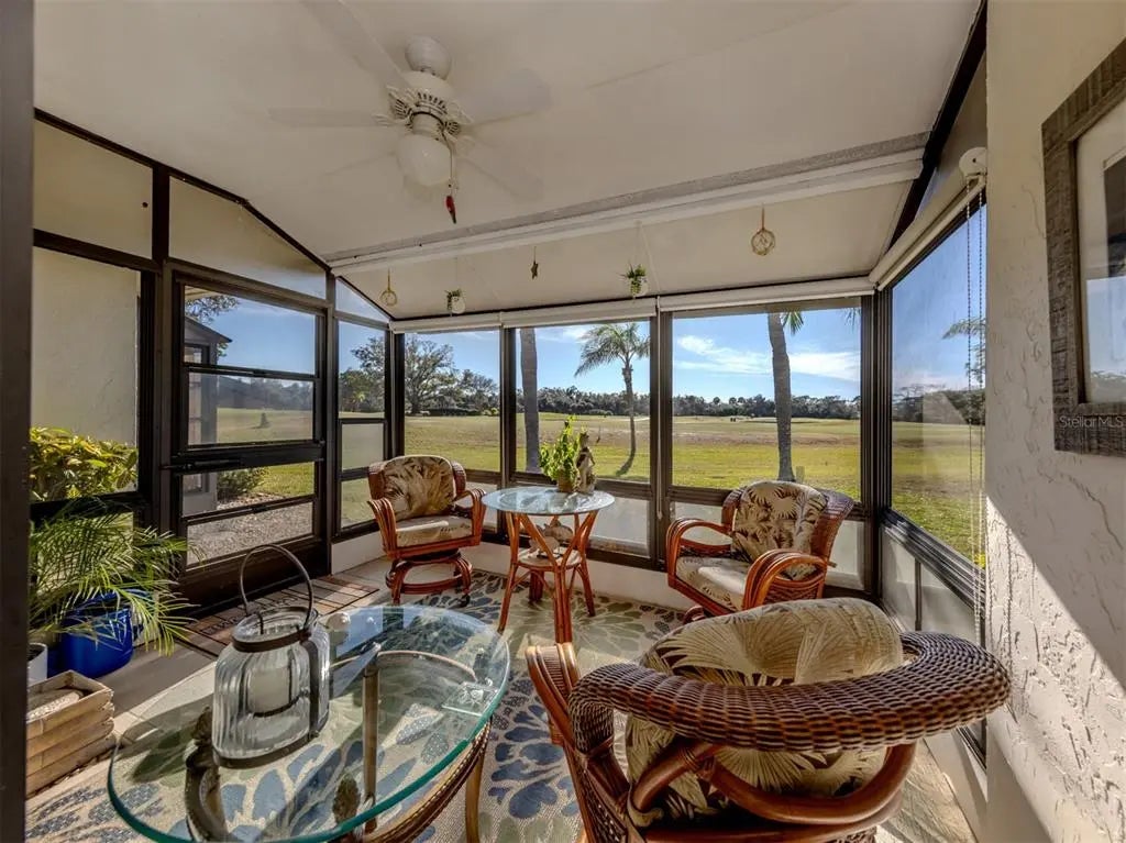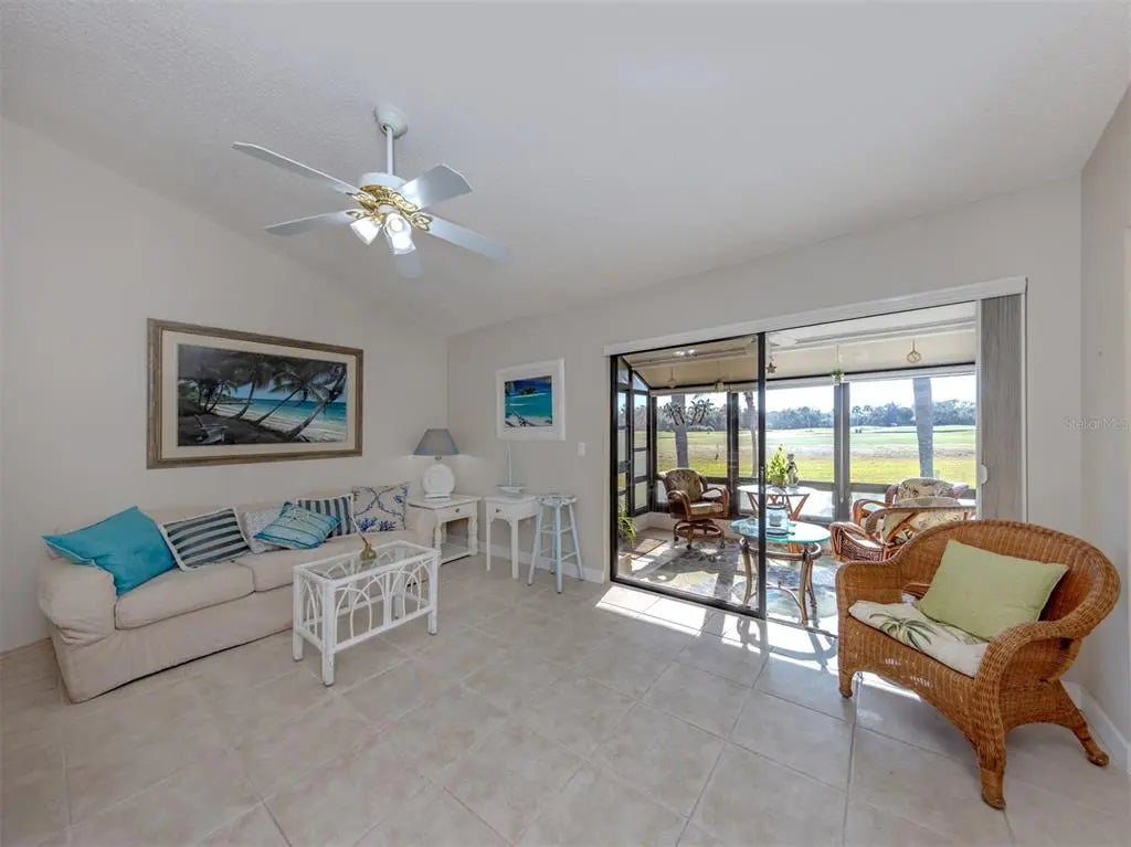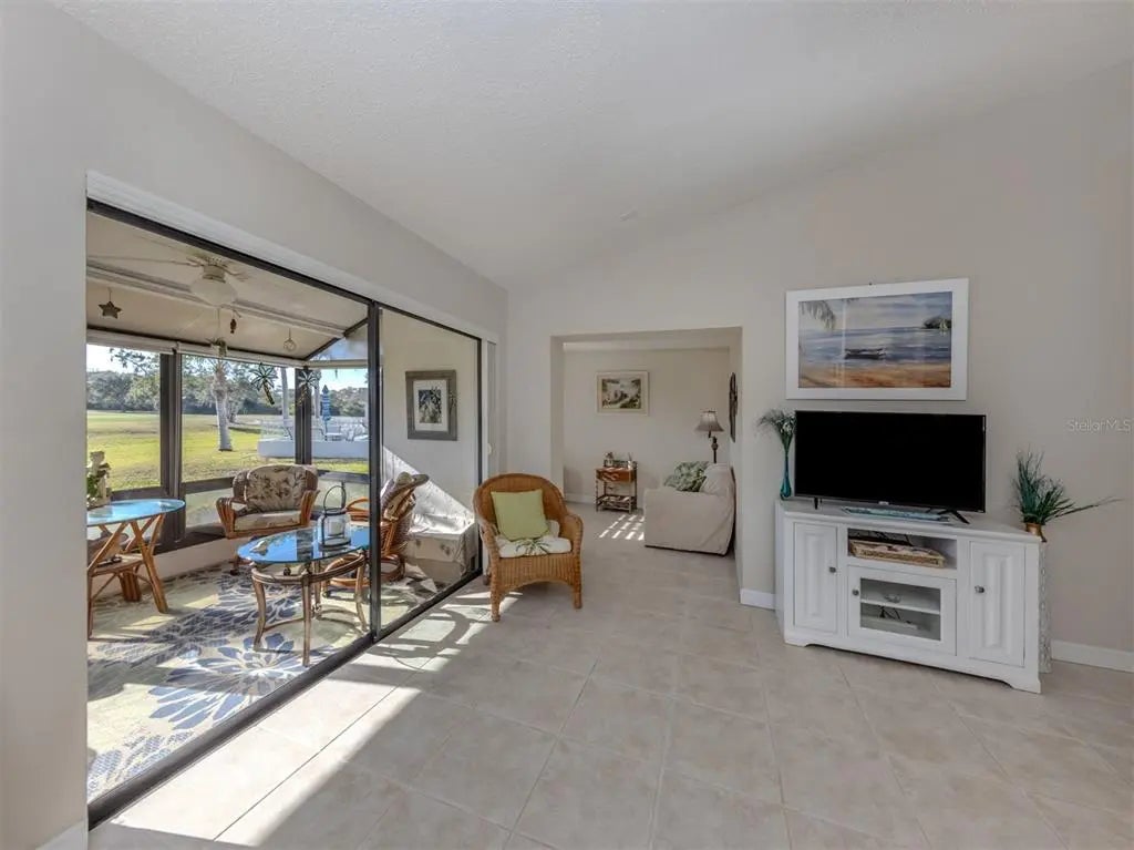 Under contract-accepting backup offers. Welcome home! Enjoy panoramic golf course views and stunning sunset vistas right from your own living space. This is a beautiful furnished and impeccably maintained one-bedroom, one-bath ONE STORY VILLA with a versatile DEN that can easily be converted into a SECOND BEDROOM. This light-filled unit offers soaring vaulted ceilings and tile flooring throughout, creating an open and airy feel. The kitchen features stainless steel appliances, Corian countertops and ample cabinetry ideal for everyday living or entertaining. The spacious bath offers a walk-in glass shower, while in-unit laundry adds everyday convenience. Plantation shutters enhance privacy and style. This is the ideal retreat for seasonal or year-round living. Ideally within minutes of many golf course as well as dining, medical facilities, A-rated schools, Sarasota Memorial Hospital, Legacy Trail, Historic and charming downtown Venice, white sandy beaches and so much more! This villa offers comfort, convenience and a lifestyle that's hard to beat. Make an appointment today. You will be glad you did.